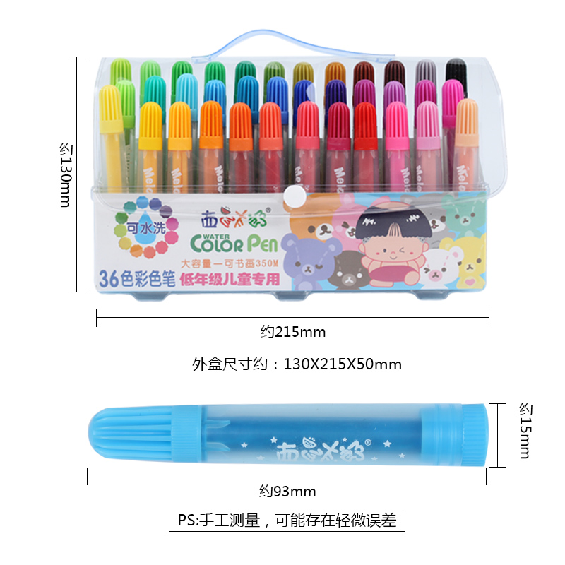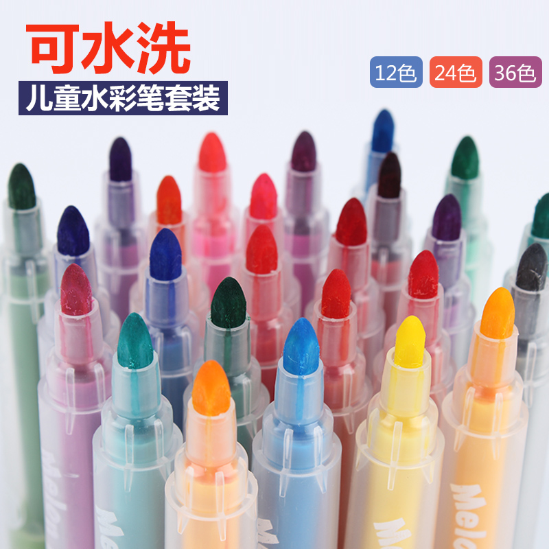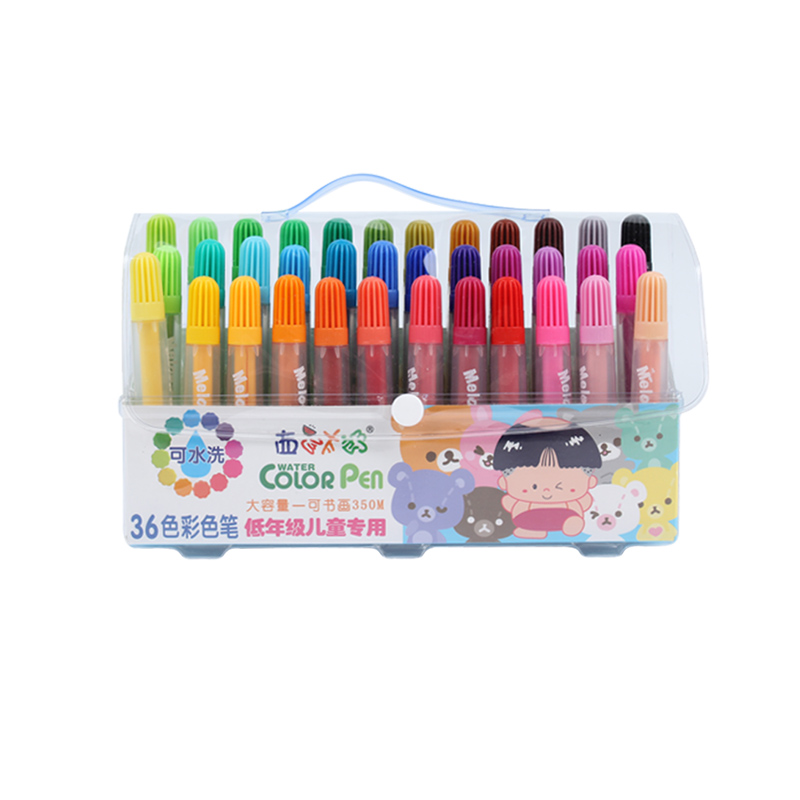 西瓜太郎新款儿童水彩笔套装12/24/36色幼儿园宝宝画笔安全可洗彩色笔粗笔头圆杆手提桶装小学生环保彩色水笔