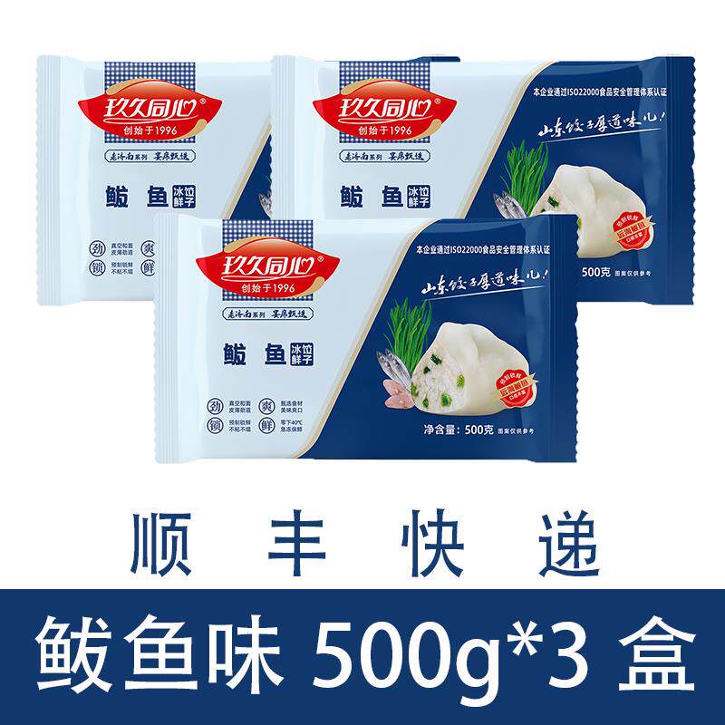 玖久同心马鲛鱼水饺虾仁猪肉白菜韭菜葱芹菜素三鲜山东手工水饺