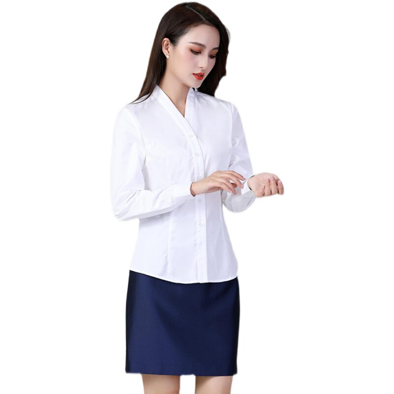 新款红旗汽车4S店女士修身长袖衬衫工作服白色立领女衬衣职业工装