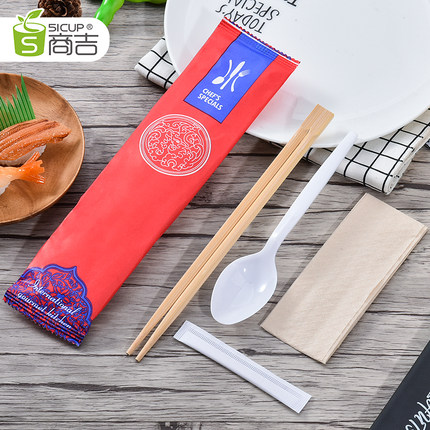 上海商吉一次性筷子四件套商用外卖餐具包套装快餐四合一竹筷家用