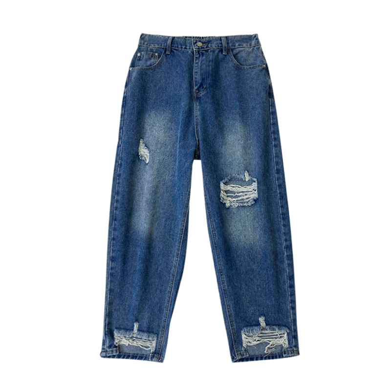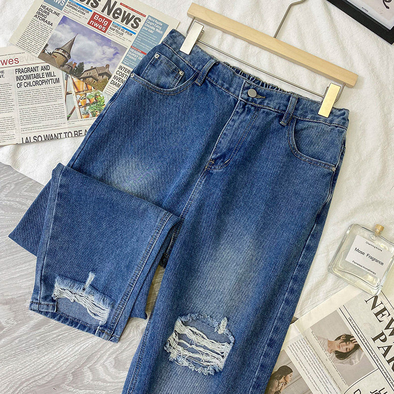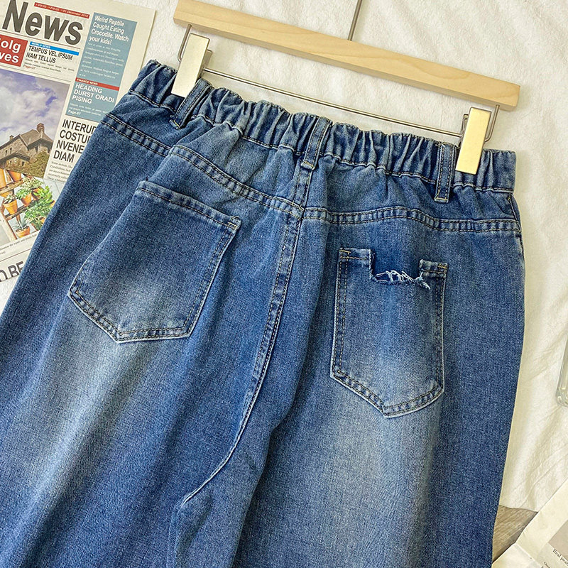 300斤大码女装胖mm2025夏季新款宽松直筒遮肉高腰破洞牛仔九分裤