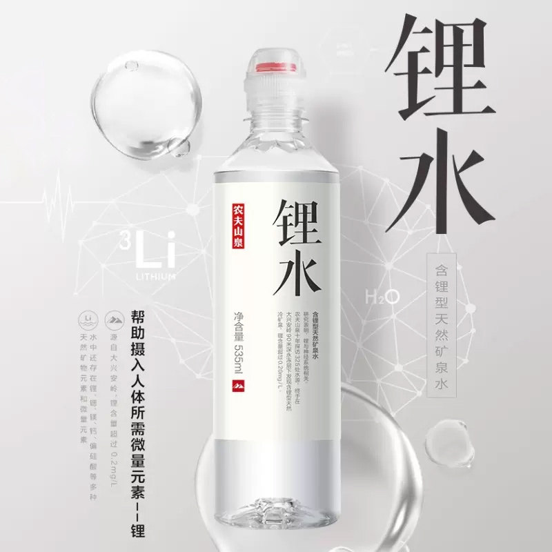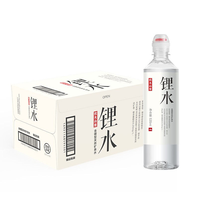 农夫山泉锂水含锂型天然水535ml瓶装整箱特价运动盖天然饮用水