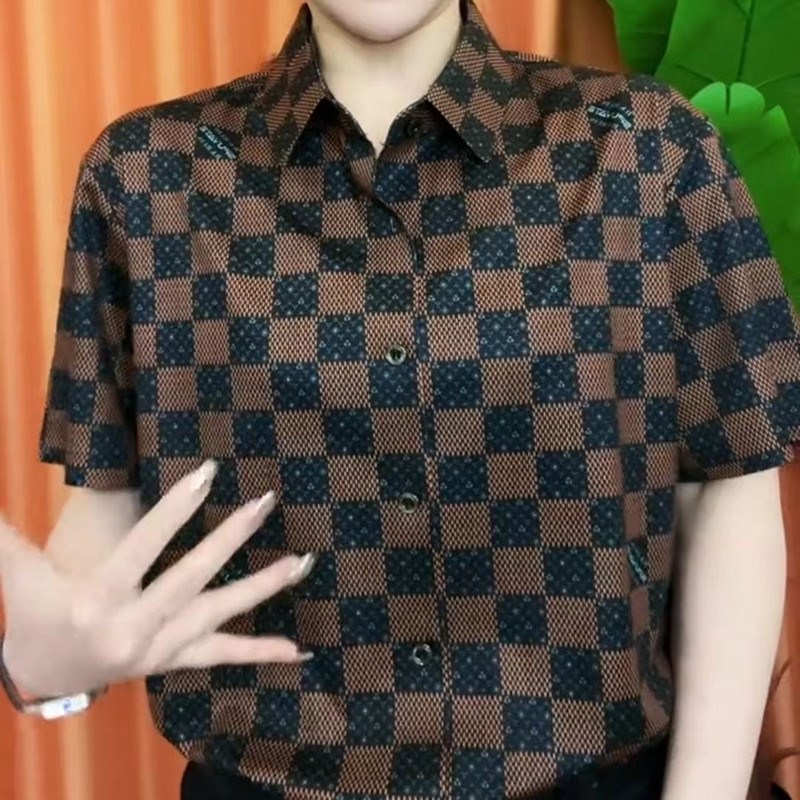 2024夏季短袖格子衬衫轻奢时尚休闲商务男士半截袖翻领衬衫男女款