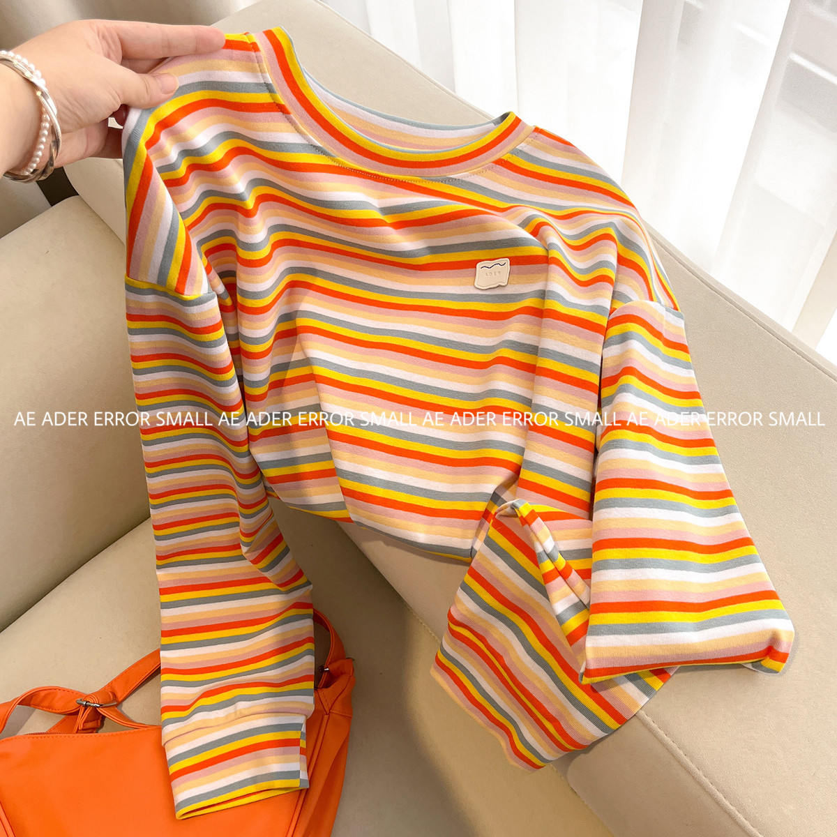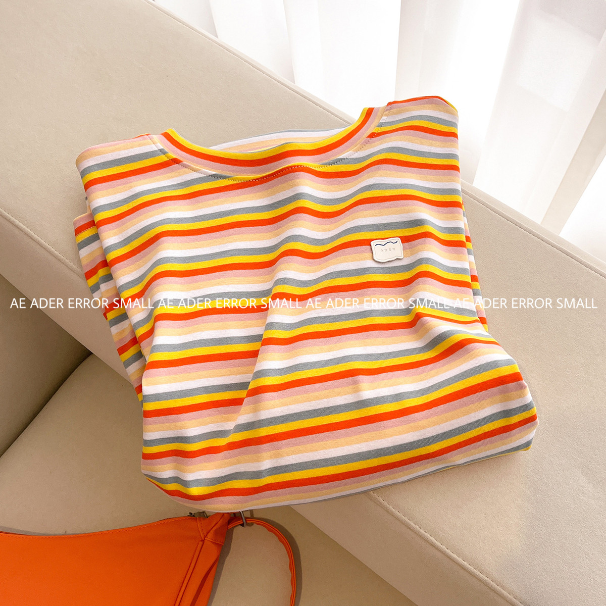 ader error small长袖T恤女春秋慵懒风宽松圆领条纹打底衫上衣潮