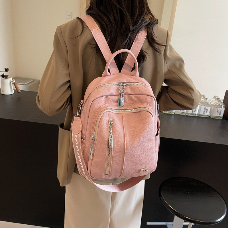 双肩包女新款通勤休闲软皮质感背包时尚女士短途旅行外出小书包潮