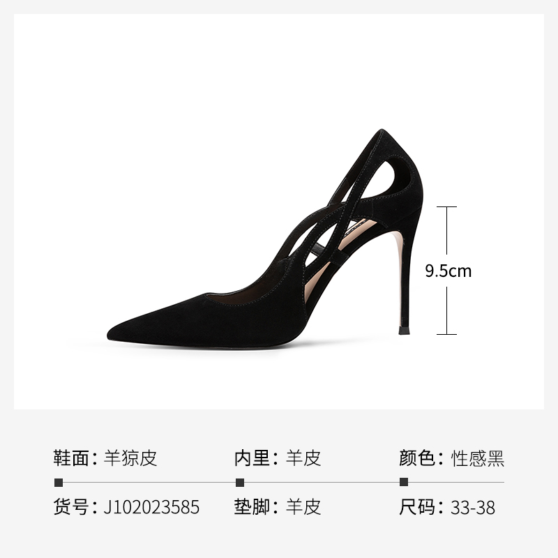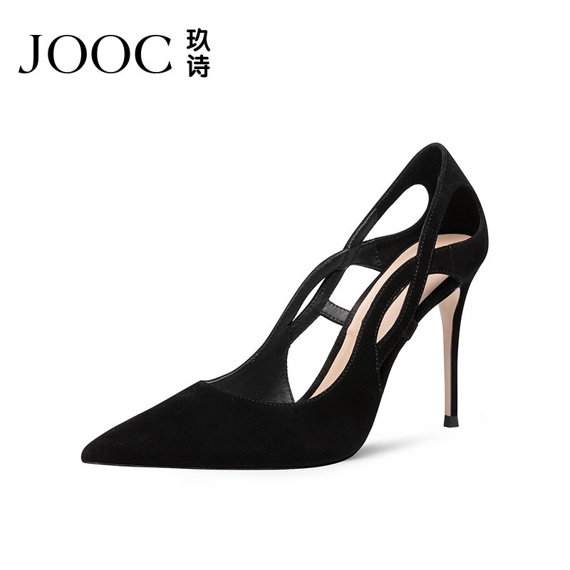 JOOC玖诗当季热卖尖头黑色高跟鞋镂空女细跟单鞋性感社交百搭