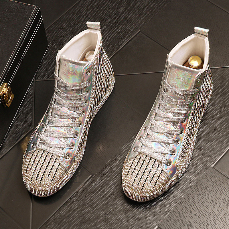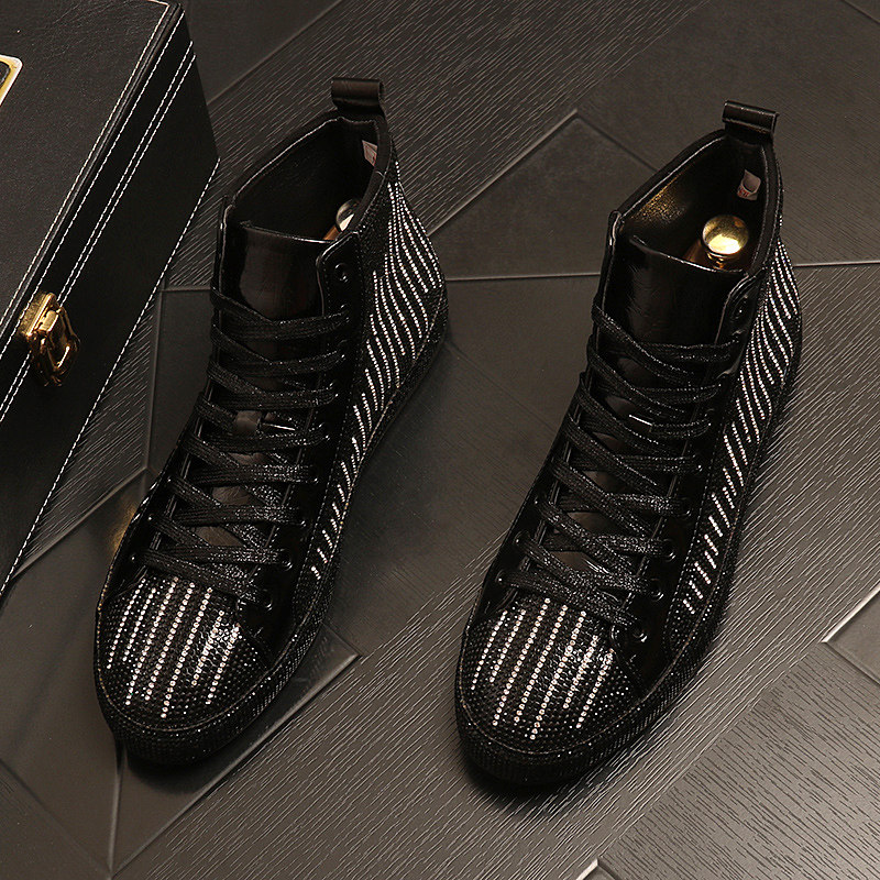 高帮鞋男士时尚个性水钻中帮马丁靴潮牌男鞋2025新款透气高邦板鞋
