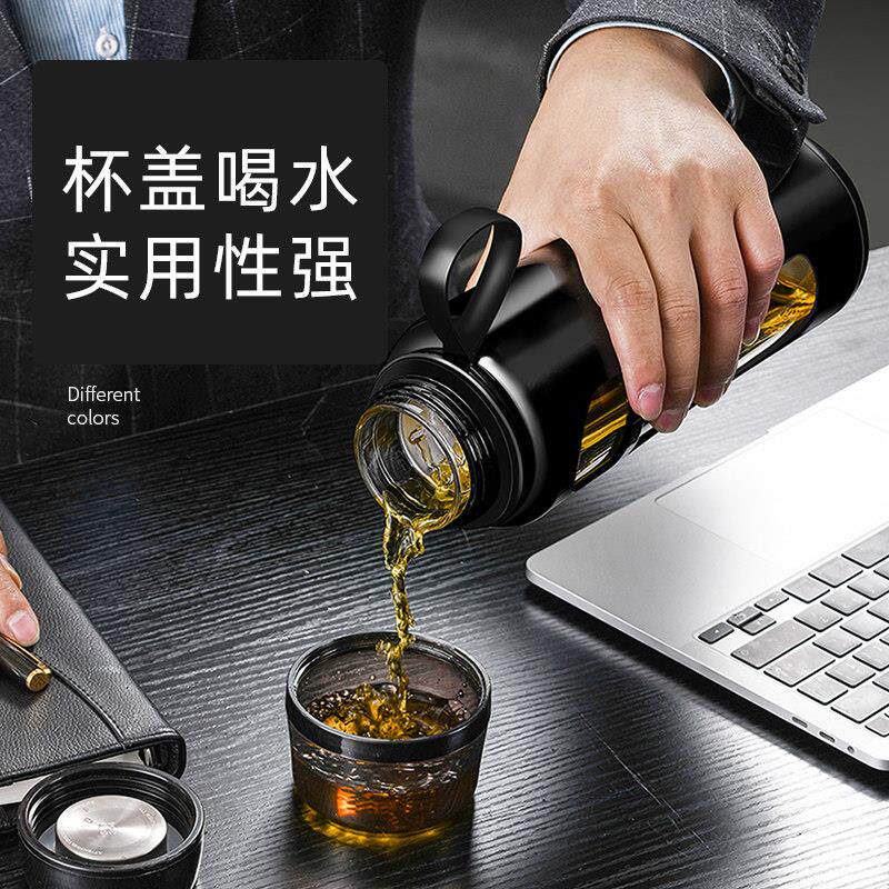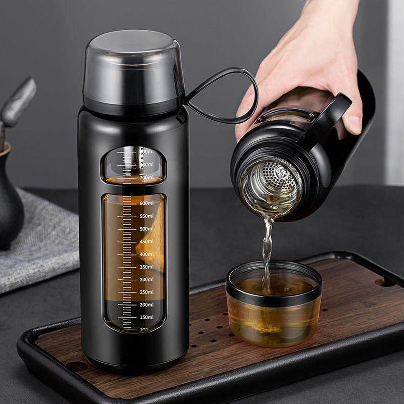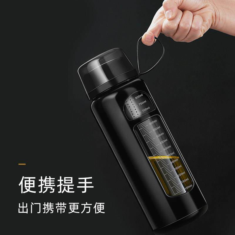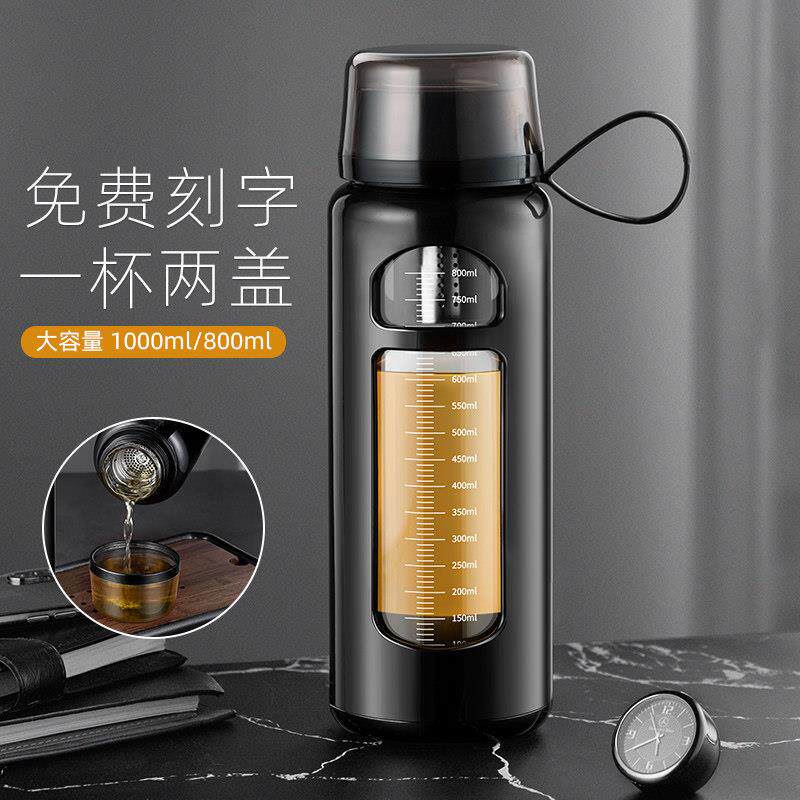 玻璃水杯男士大容量刻度杯隔热泡茶杯双层可携式杯子耐高温防摔防