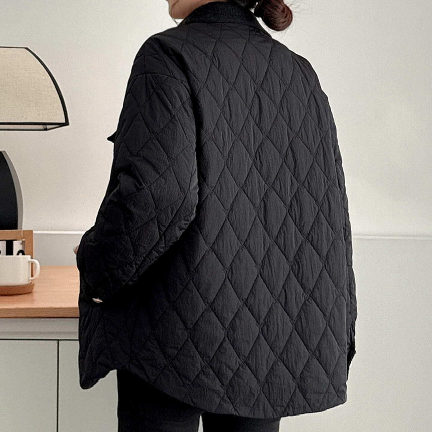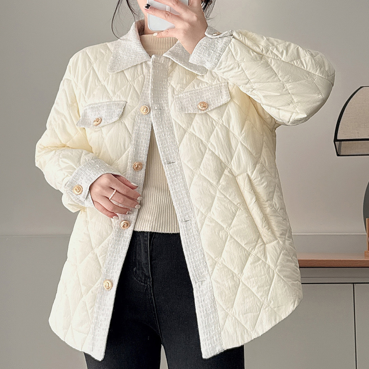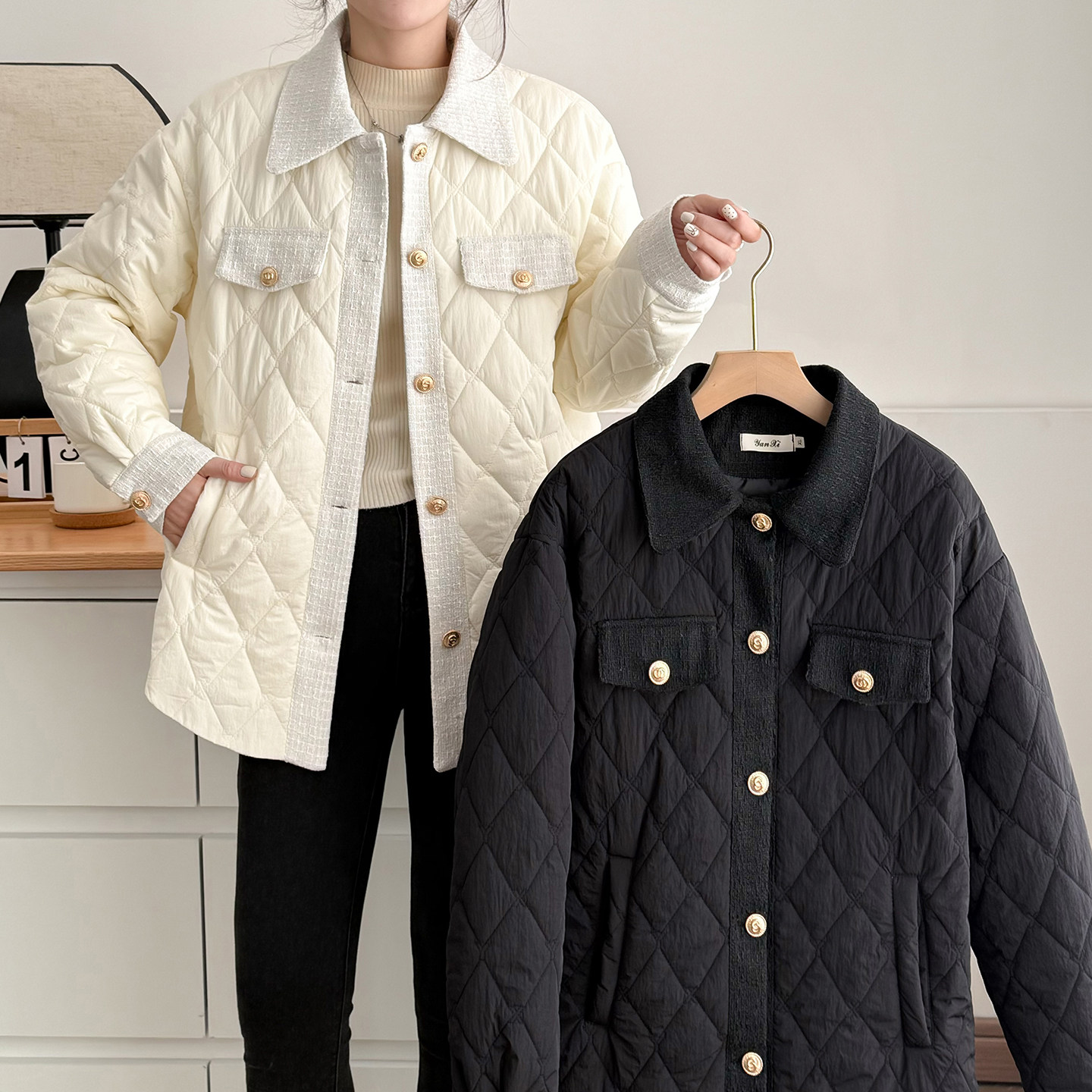 菱格洋气大码棉服胖mm小香风时尚翻领棉衣保暖宽松显瘦夹棉外套女