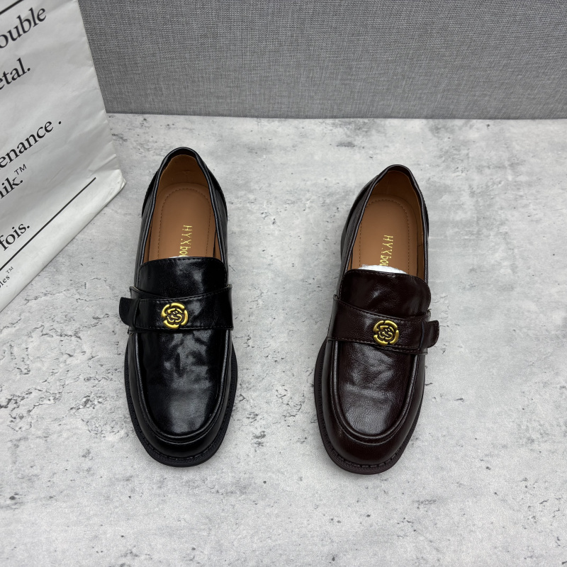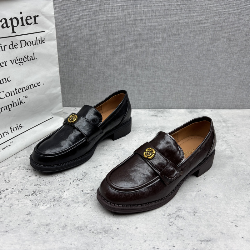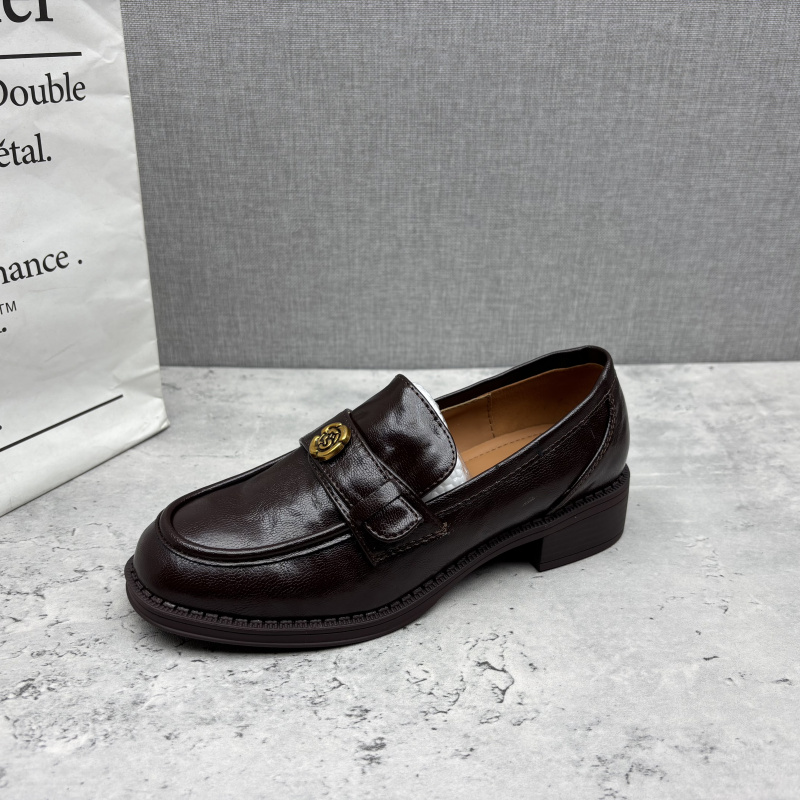 工厂处理真皮女鞋2025春季新款圆头套脚低跟乐福鞋软皮潮款女单鞋