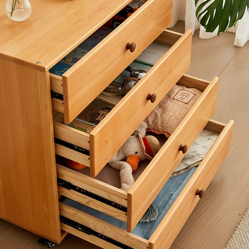 金多喜实木儿童斗柜原木带轮书柜家用卧室床头柜榉木收纳四抽屉柜