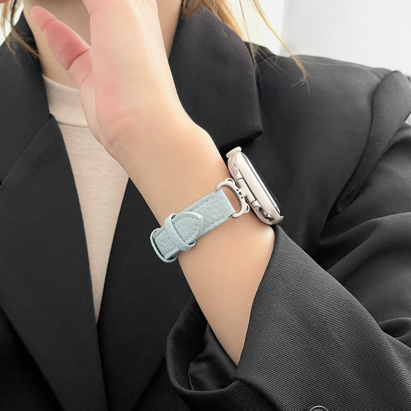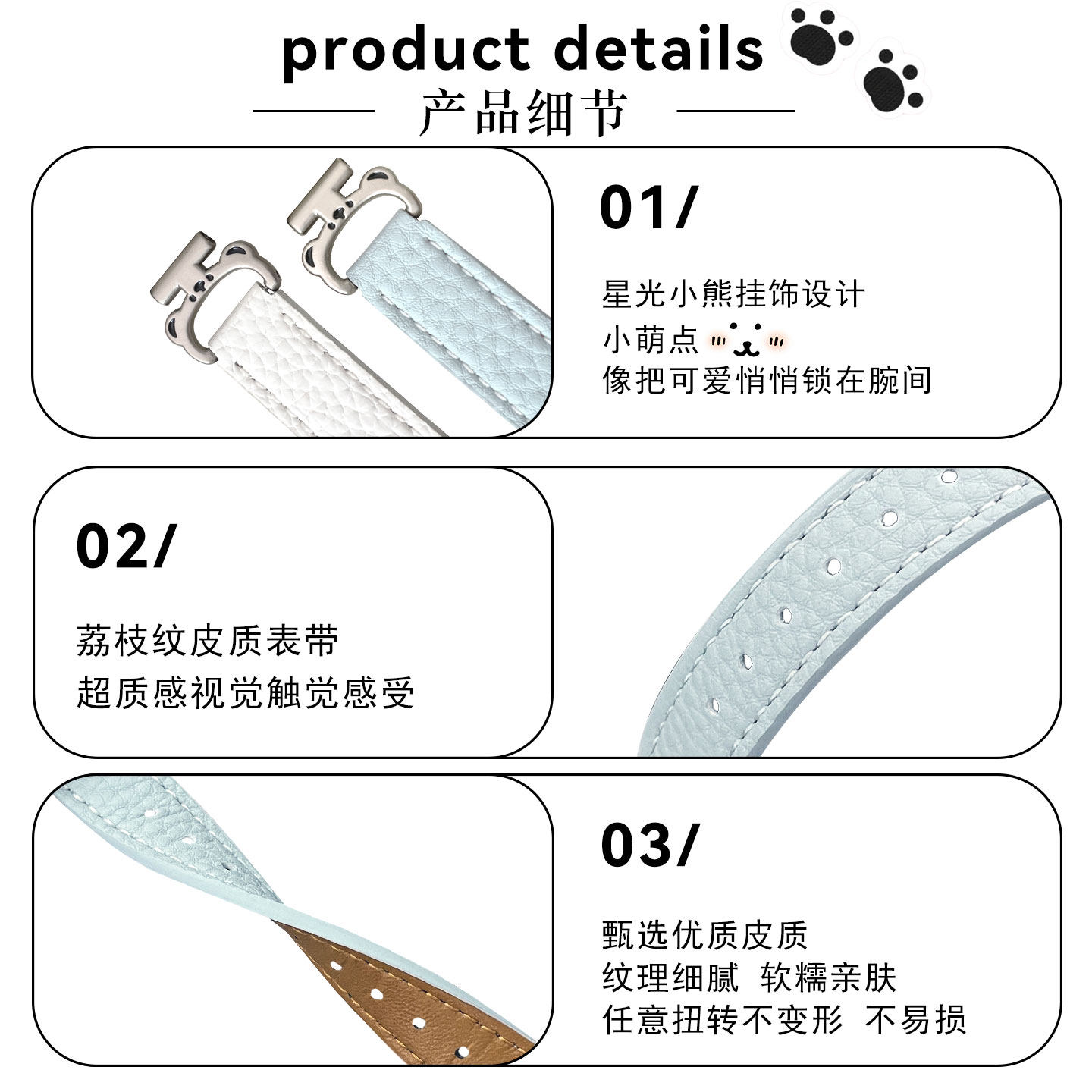 适用华为手表fit4手表带链星光小熊皮质荔枝纹华为watchfit3运动fit4pro智能腕带fit2女生new时尚秋冬新款