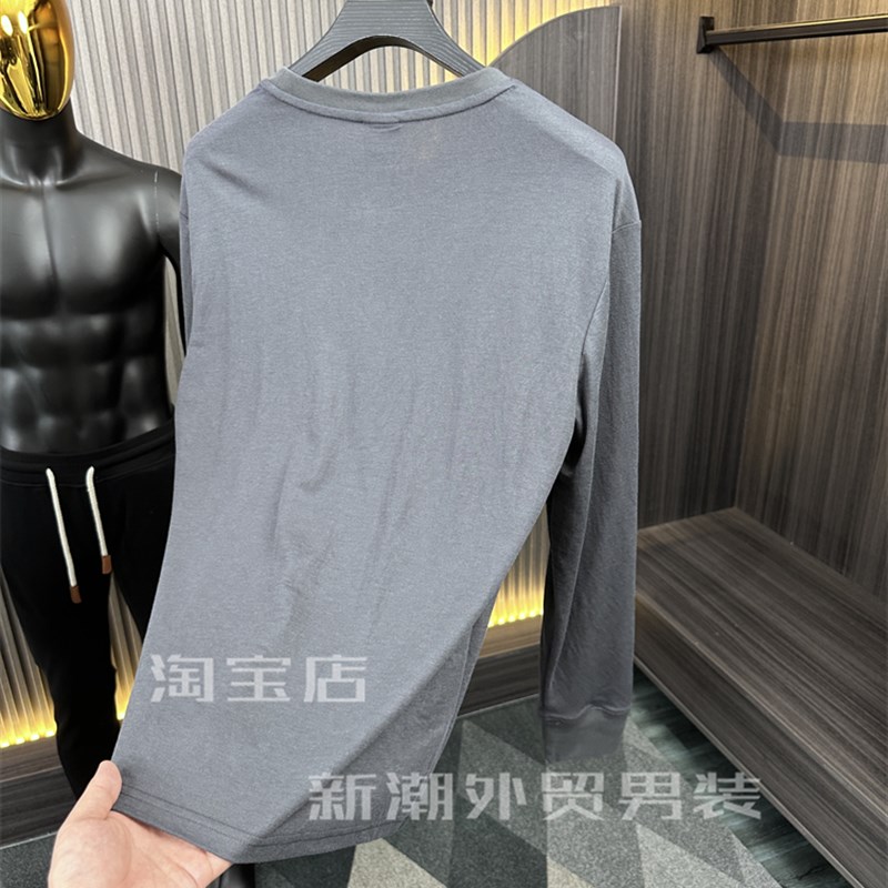 铜氨丝面料!柜1000+!丝滑透气!夏季男士轻薄打底圆领长袖T恤衫