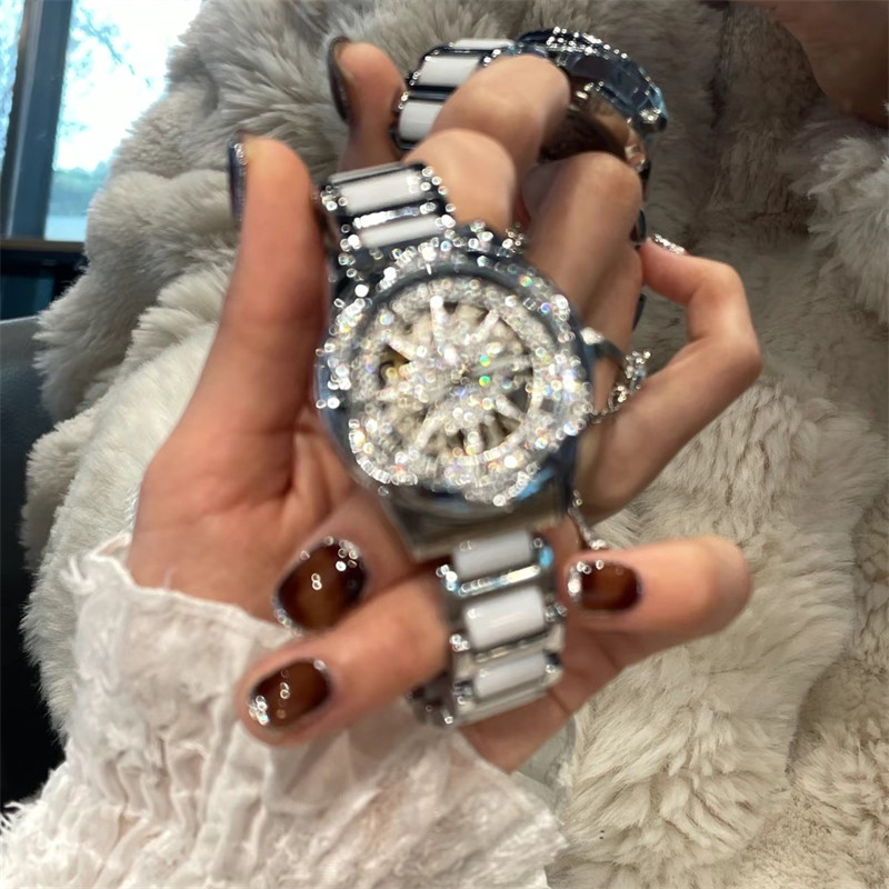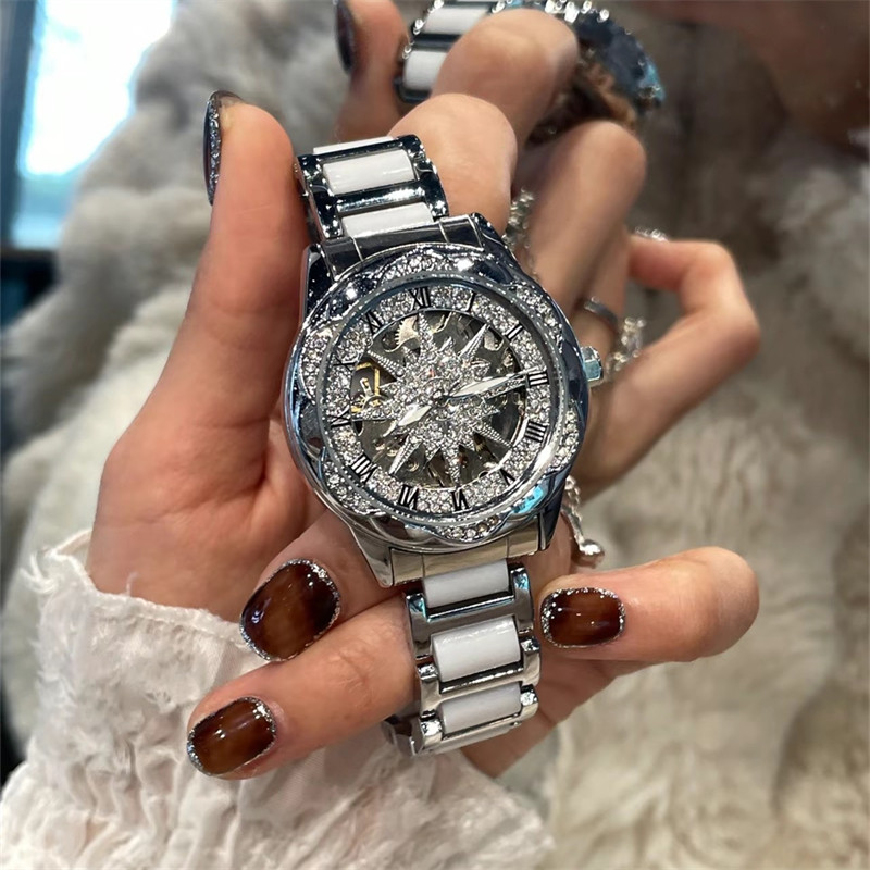 五芒星白色陶瓷手表女山茶花纯机械表2024年新款女士轻奢小众镂空