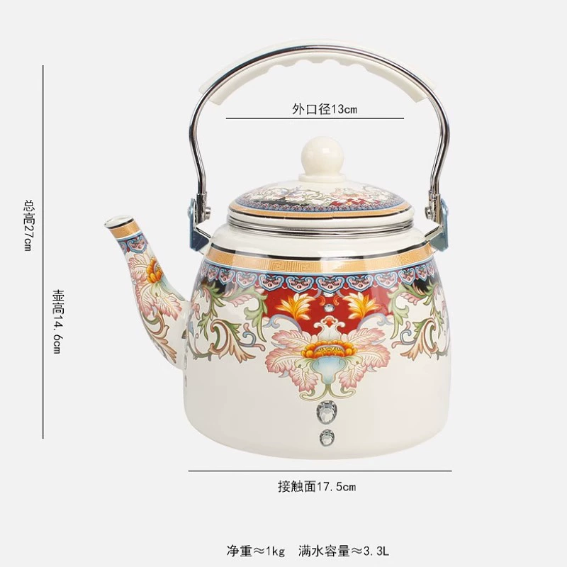 加厚搪瓷带过滤网3.3L茶壶烧水壶凉水壶家用熬药壶电磁炉明火通用