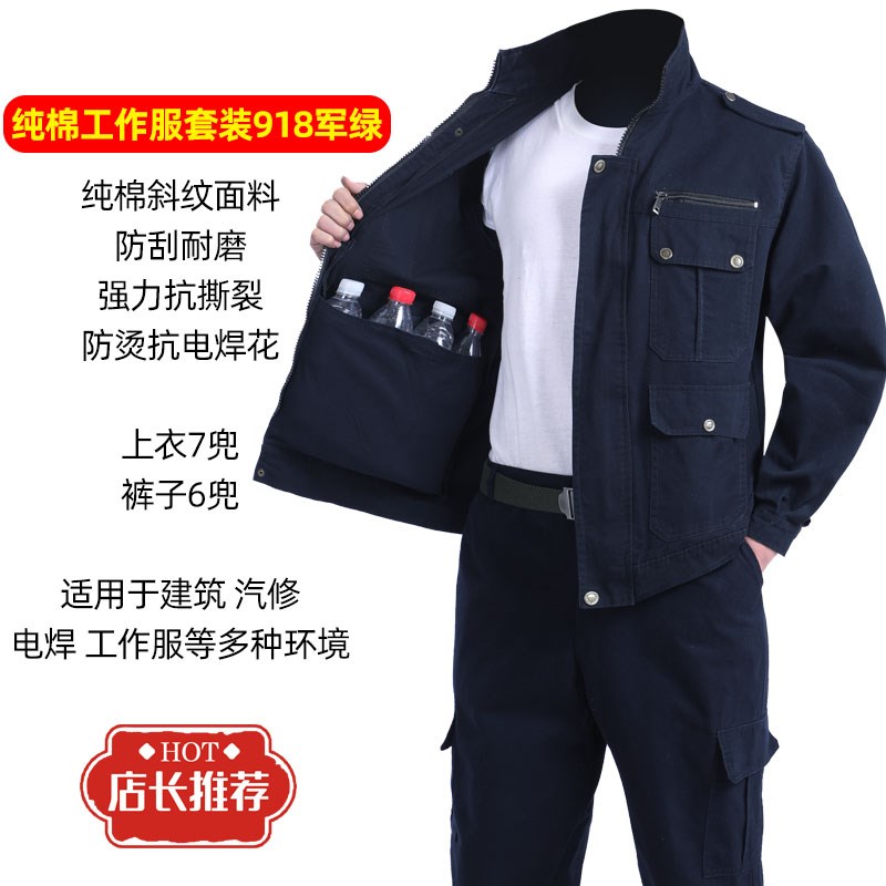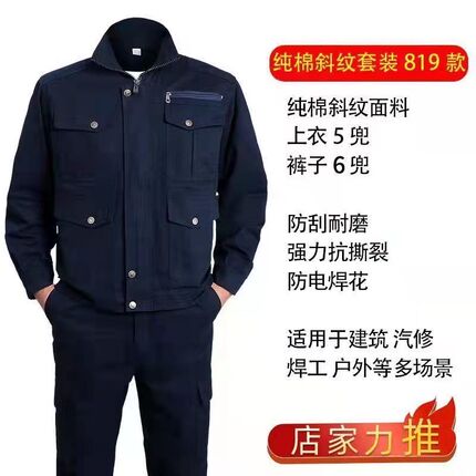 优质工作服男套装春秋加厚耐磨防烫汽修电焊工地劳保服可绣字