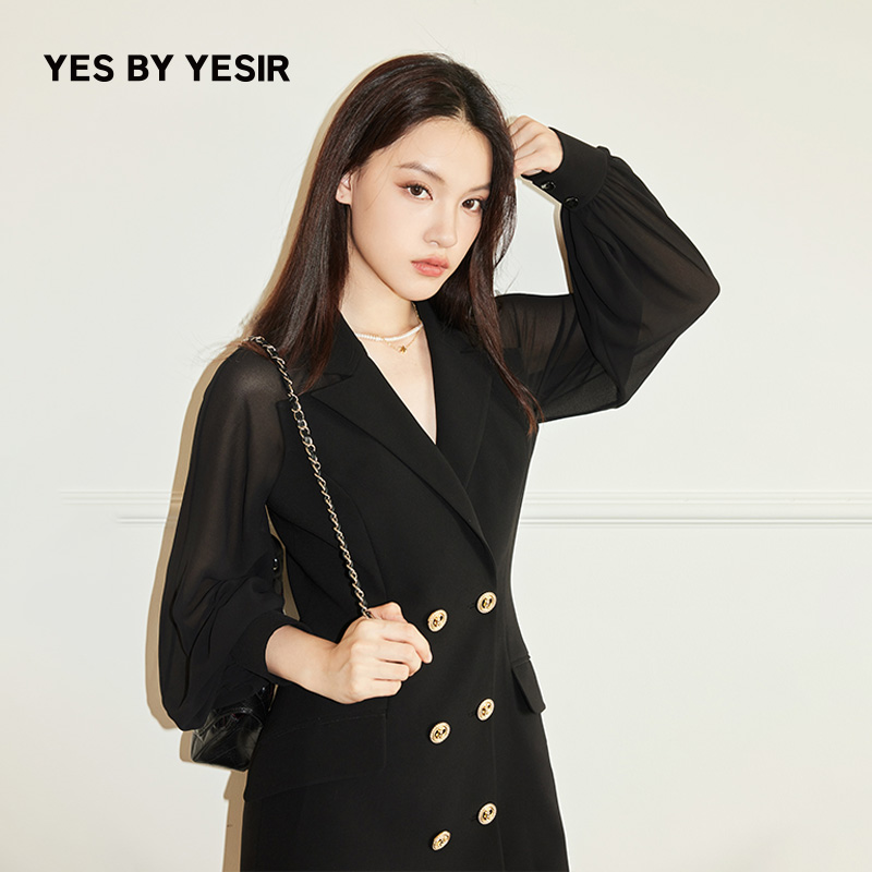 YES BY YESIR叶谦原创设计师秋新款裙子暗夜骑士西装连衣裙