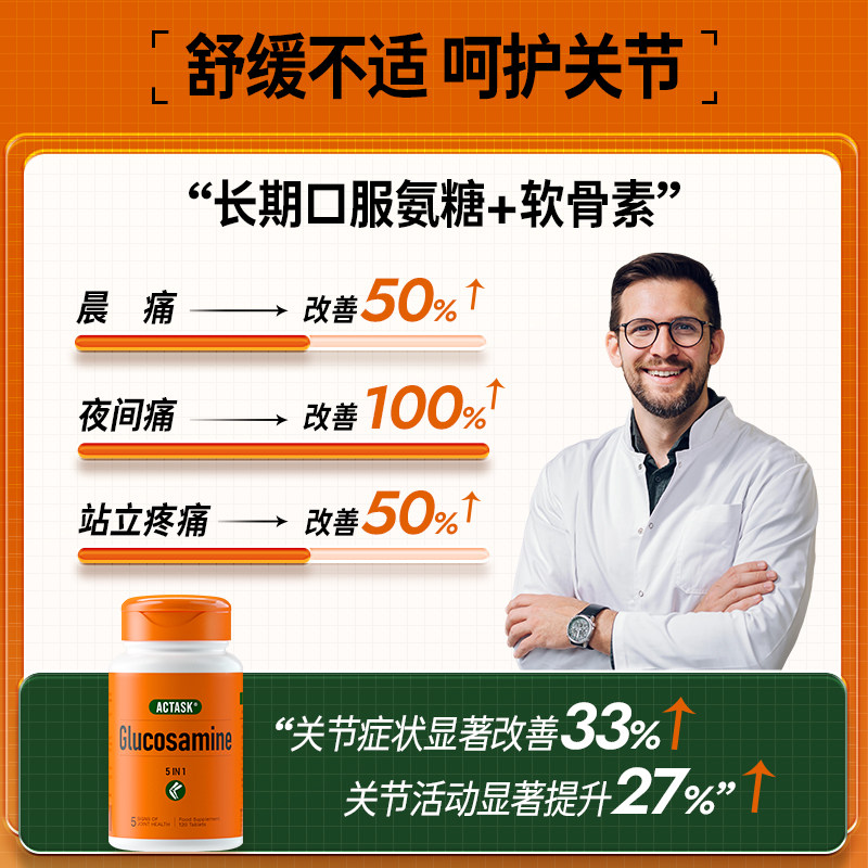 进口actask氨糖+软骨素+MSM+钙片玻尿酸补充剂中老年膝盖关节软骨