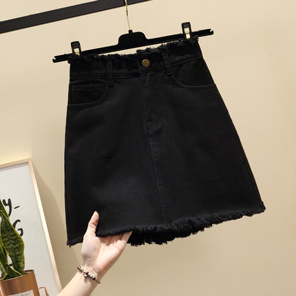 韩国高腰黑色牛仔半身裙a字款2021春夏新款女大码胖mm包臀短裙子