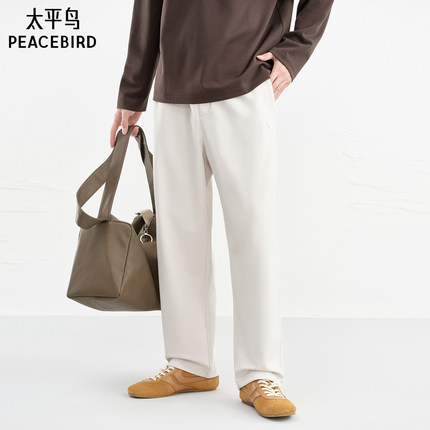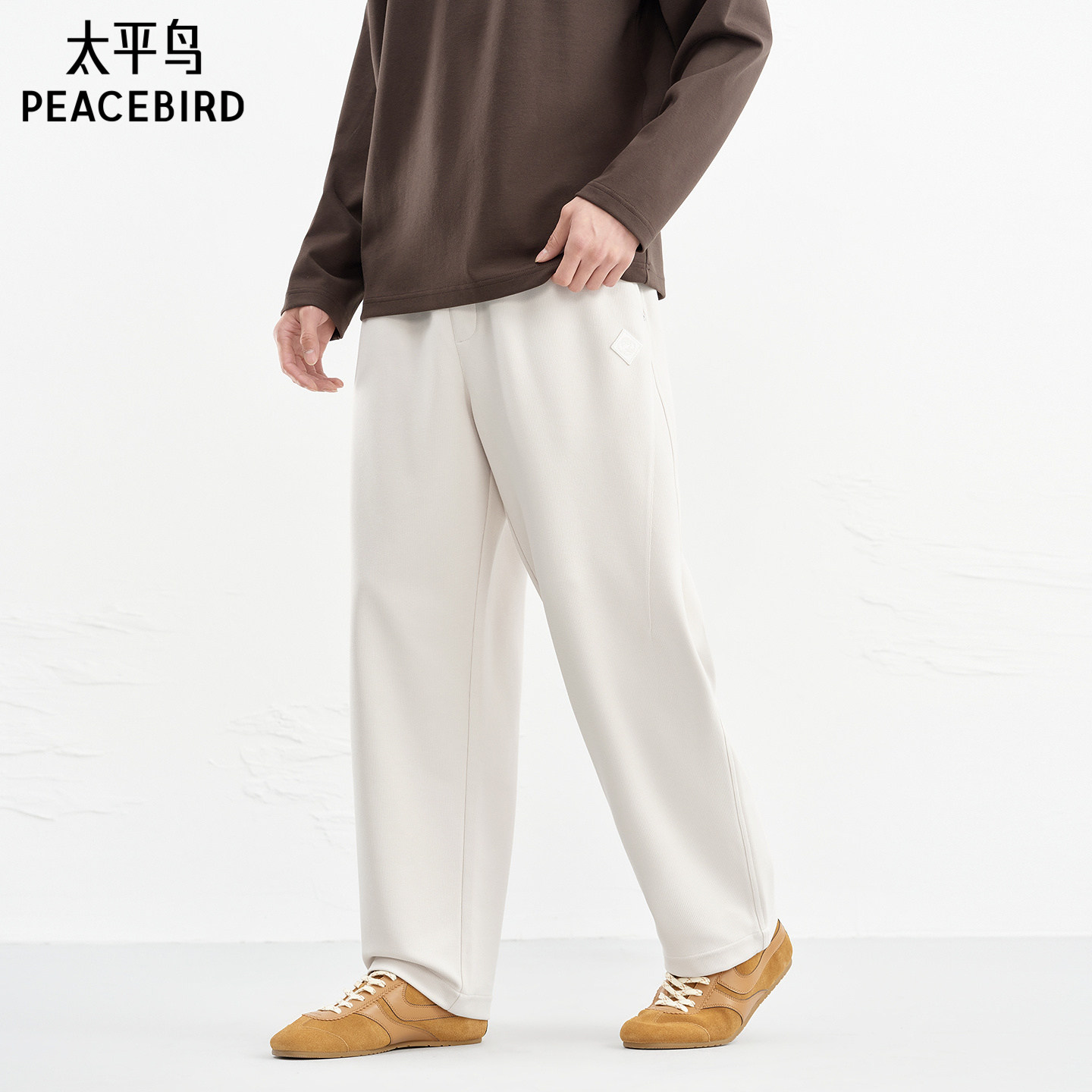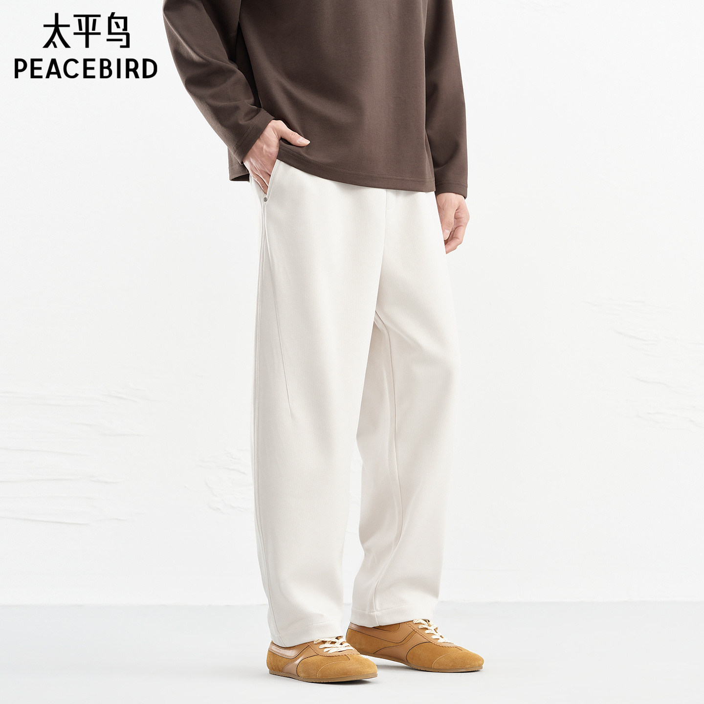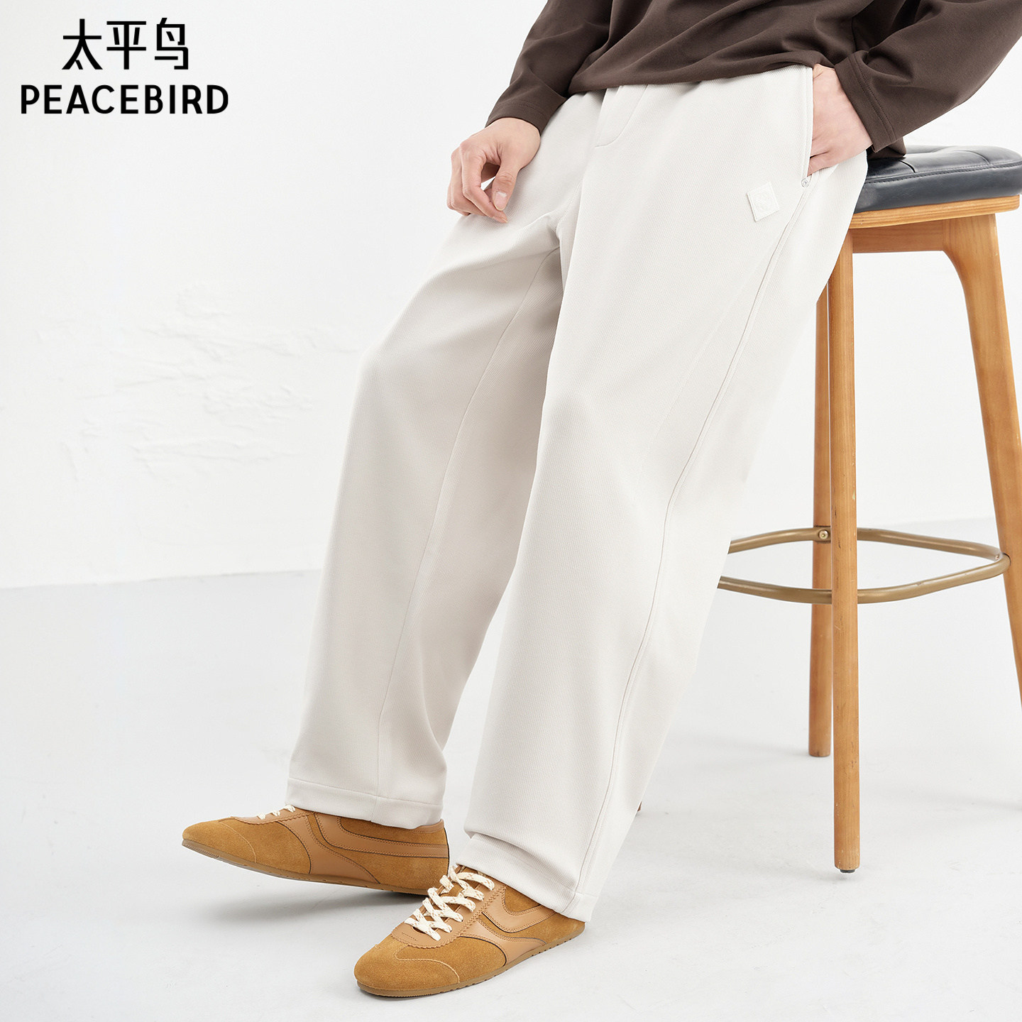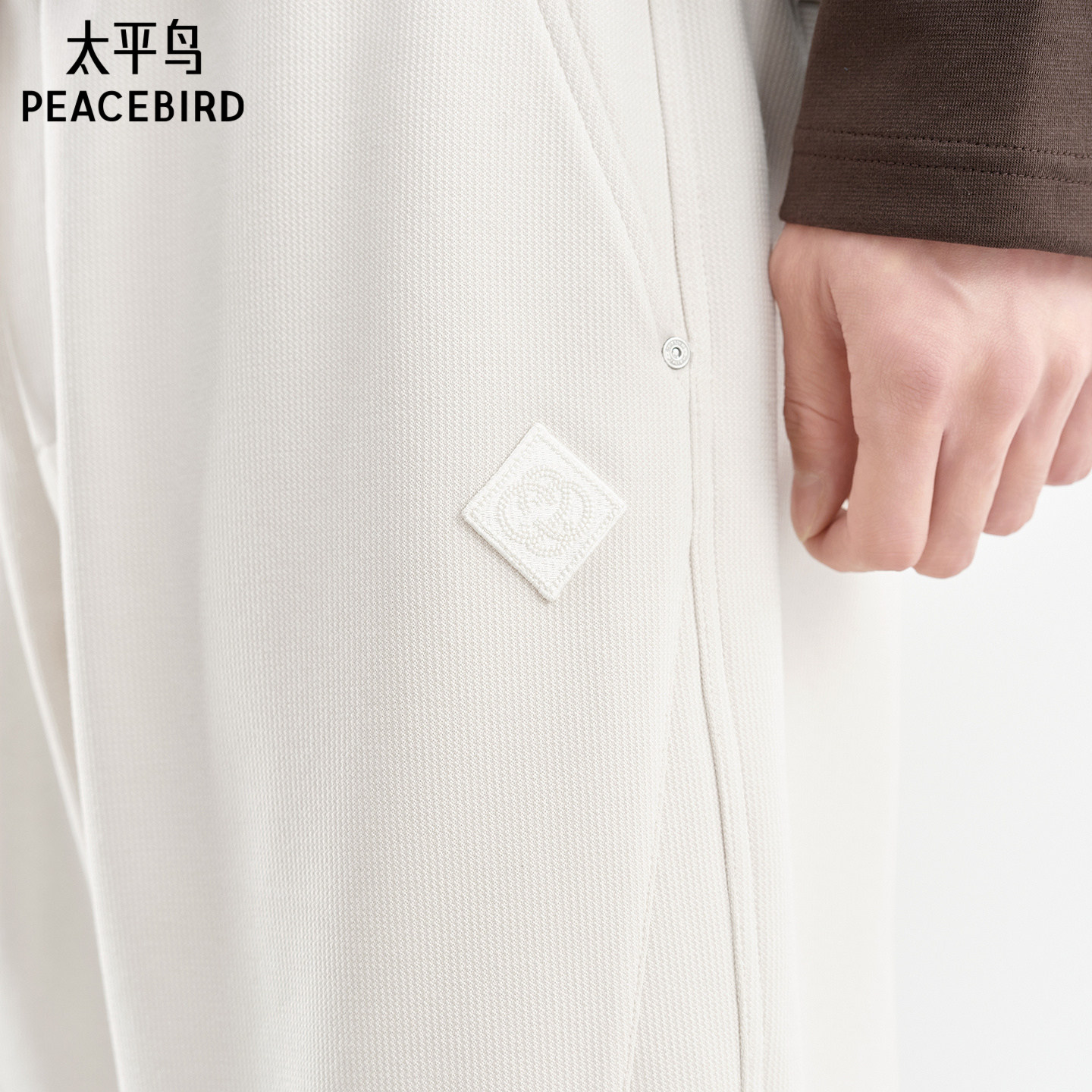 【商场同款】太平鸟男装 白色抽绳卫裤男宽松直筒休闲裤B2GMG1147
