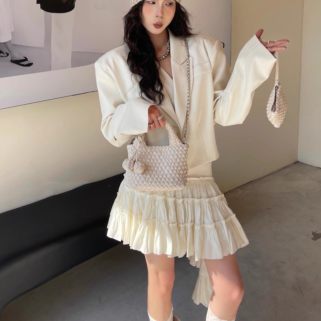 真皮手工编织菜篮子包女高级感时尚精致小拎包链条斜挎包小托特包