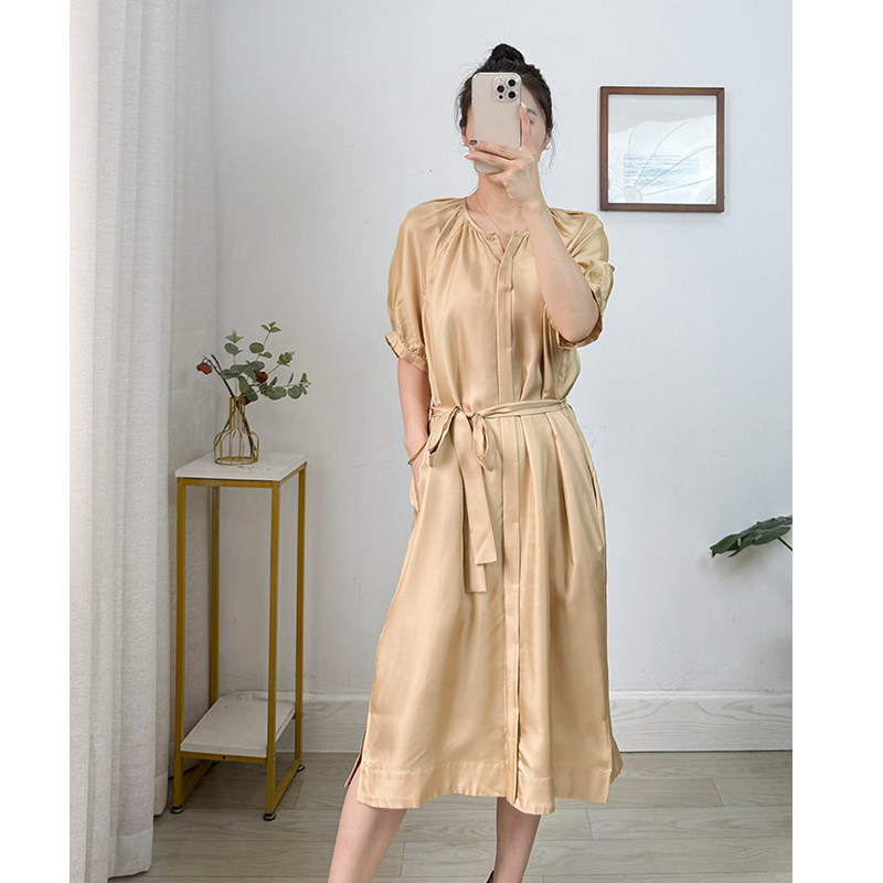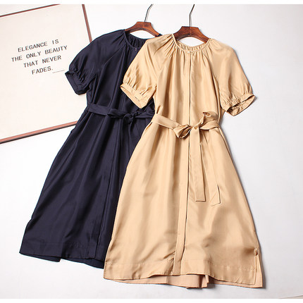 真丝斜纹绸100桑蚕丝连衣裙女