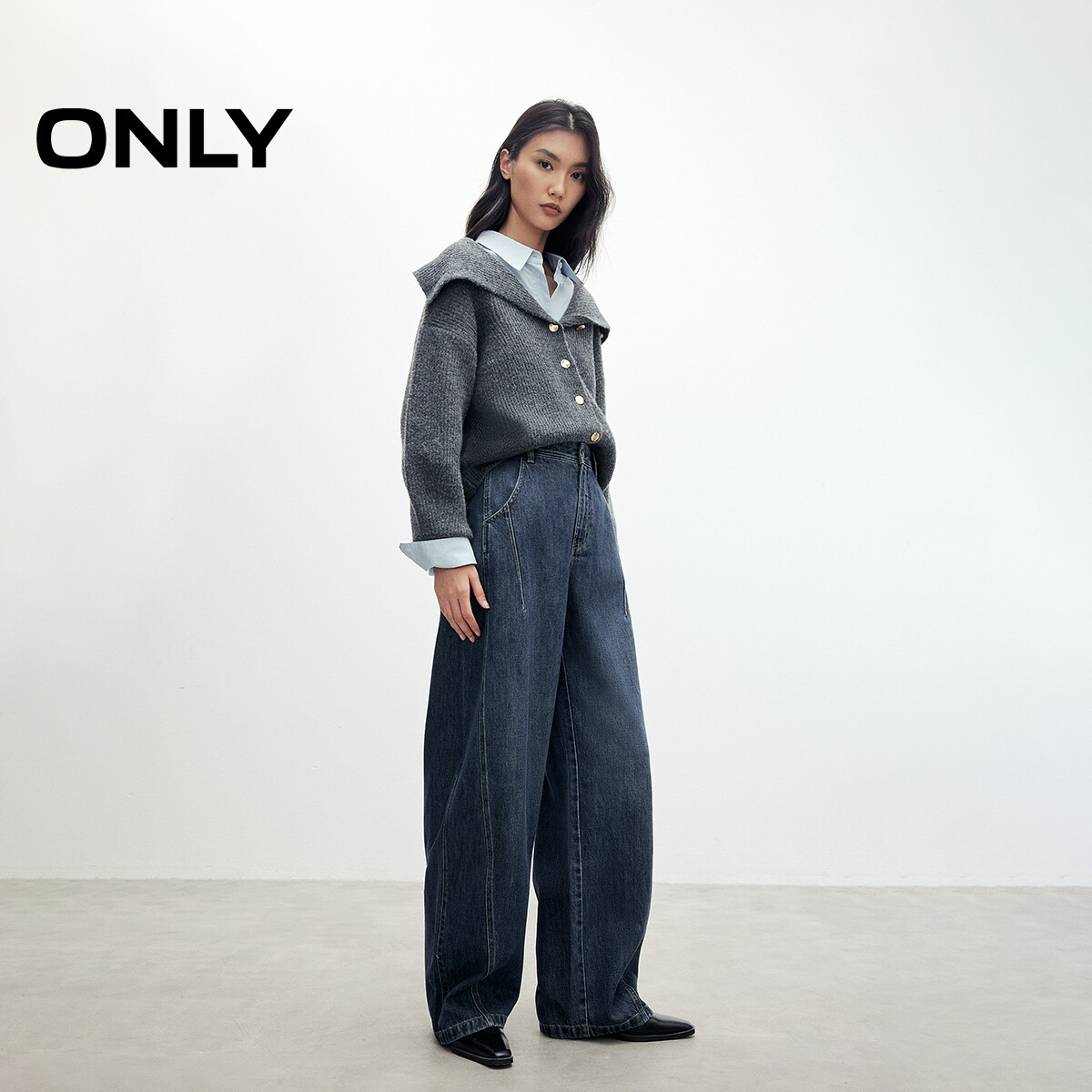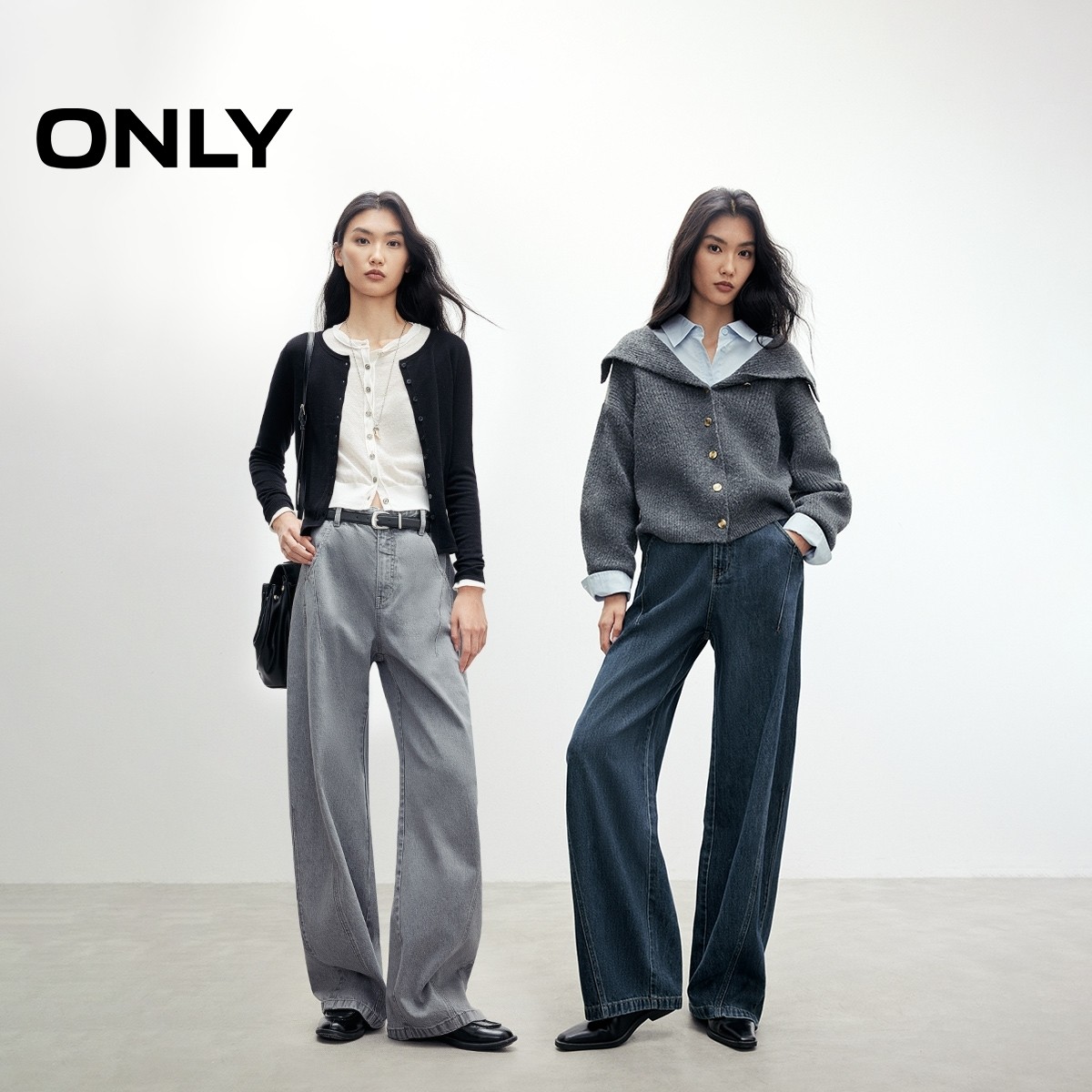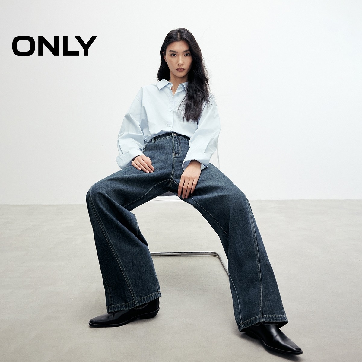 ONLY2025冬季新款显瘦高腰提臀约克线剪裁弯刀阔腿香蕉牛仔裤女