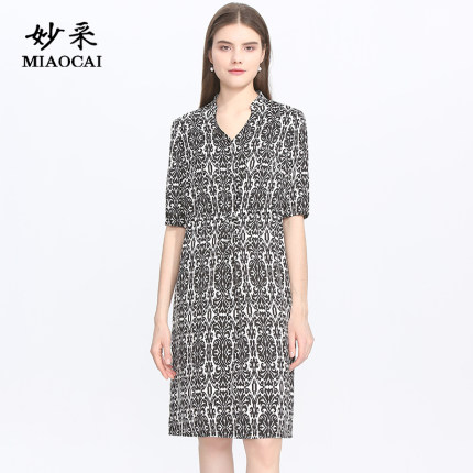 妙采旗舰店妈妈夏装连衣裙女新款时尚中老年女夏季短袖中长款裙子