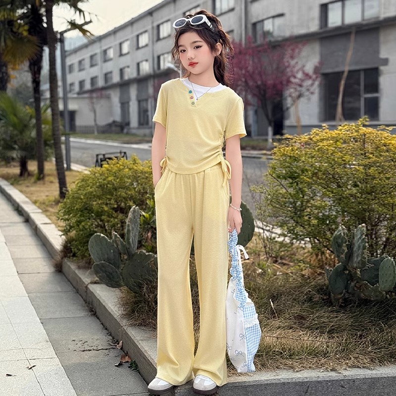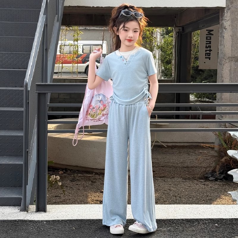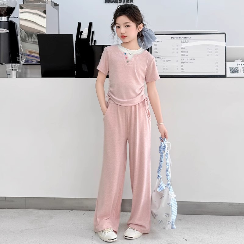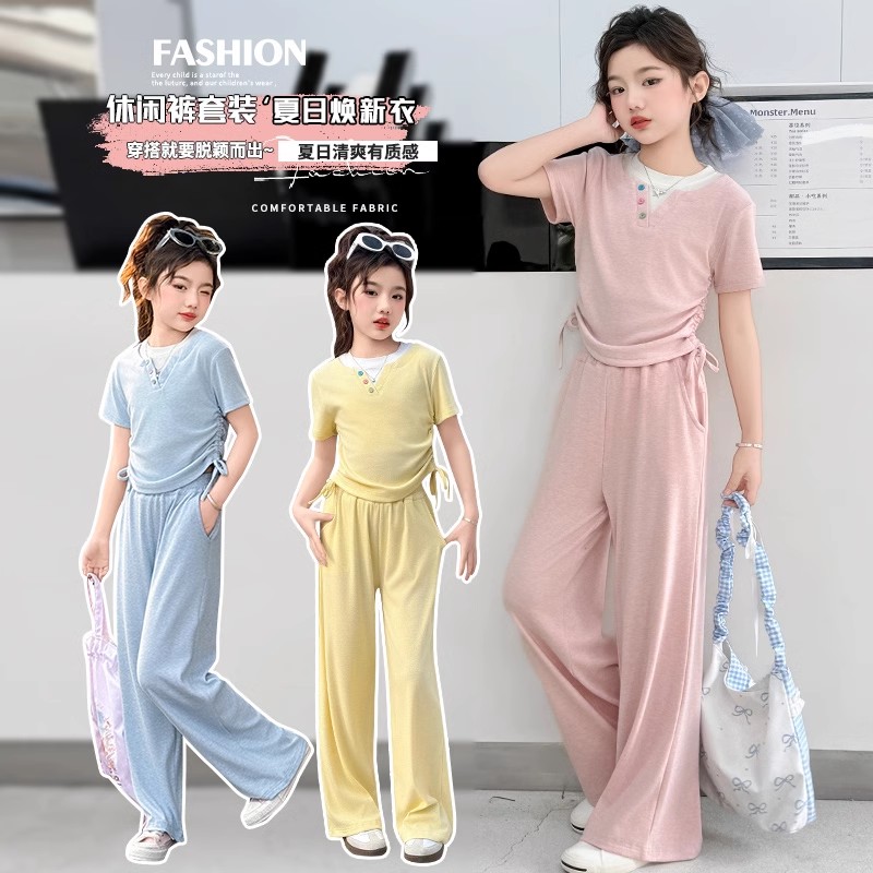 洋气休闲女童学院风时髦短袖运动服网红时髦拼色儿童夏装两件套潮