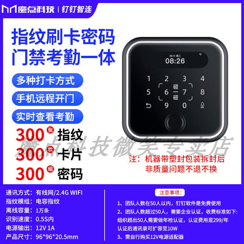 魔点x1f指纹密码门禁系统一体机 钉钉指纹识别考勤机打卡机办公室玻璃门自动感应门木门磁力锁电插锁门禁套装
