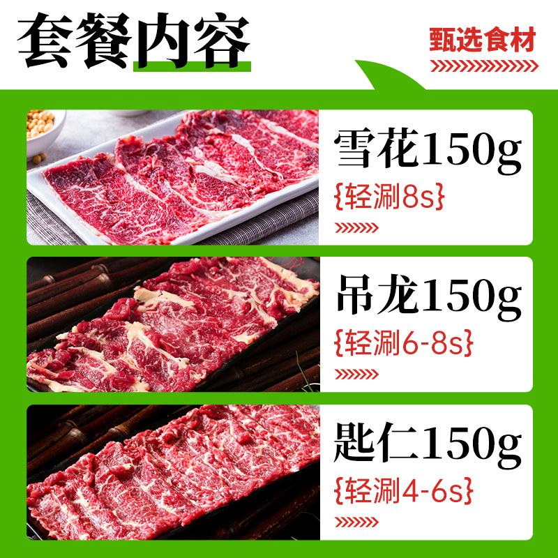祁连天宝潮汕三拼牛肉火锅吊龙匙仁雪花牛肉片家庭潮汕火锅食材