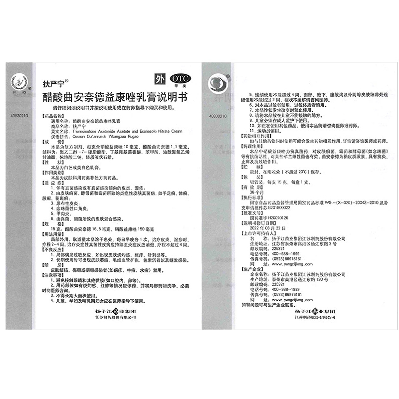 扶严宁醋酸曲安奈德益康唑乳膏15g真菌感染皮炎湿疹股癣花斑癣OTC