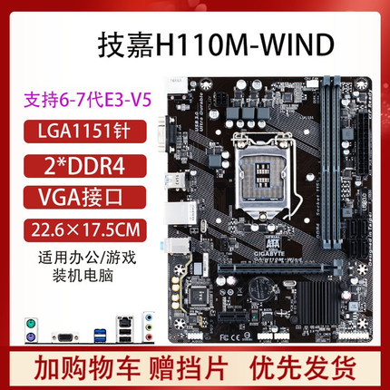 华硕H110M-K/F技嘉H110M-WIND台式机主板1151针I5 E3V5DDR4