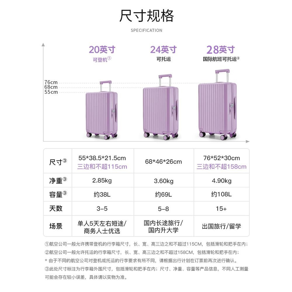 卡拉羊拉杆箱28寸行李箱大容量24寸旅行箱20寸登机箱官方正品纯PC