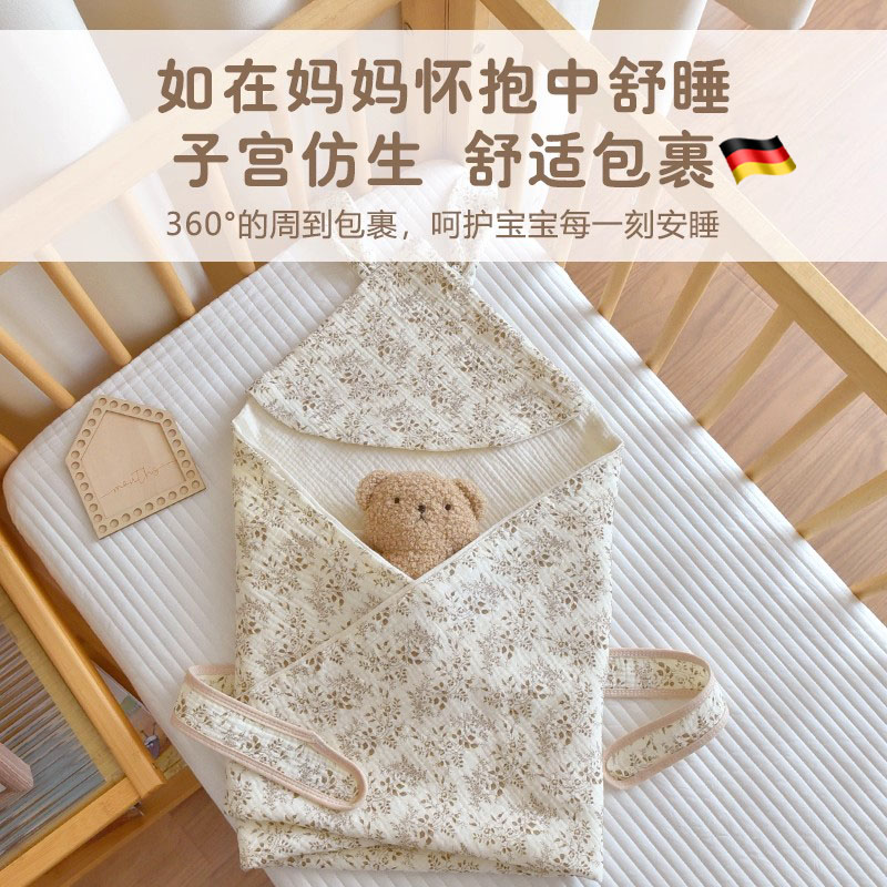 德国新生婴儿纯棉抱被宝宝全棉纱布包单产房襁褓包被秋冬加厚抱毯