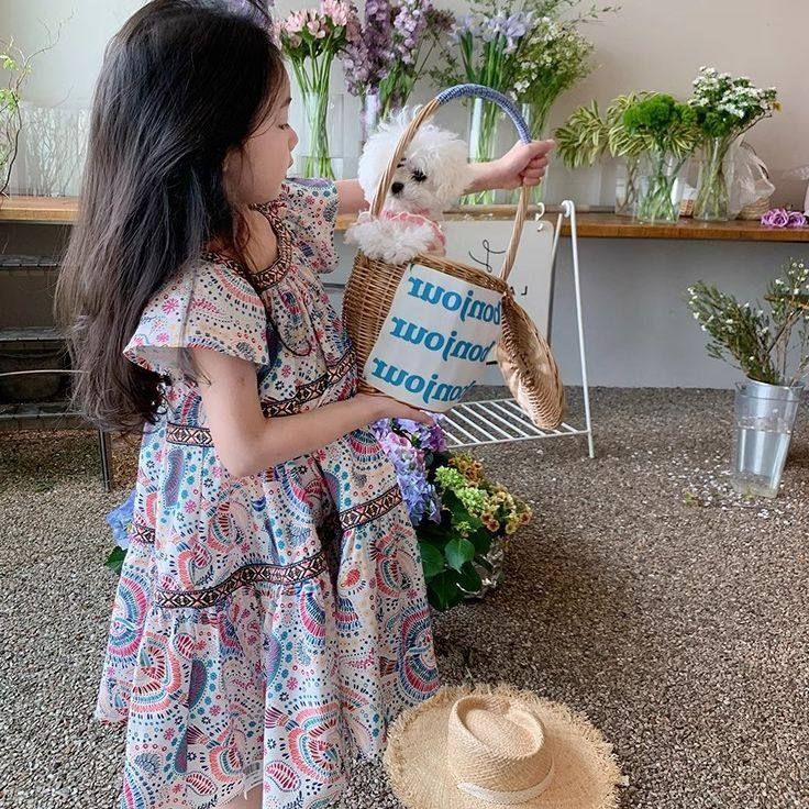 女童连衣裙民族风抽象画连衣裙公主裙25夏装新款外贸童装代发