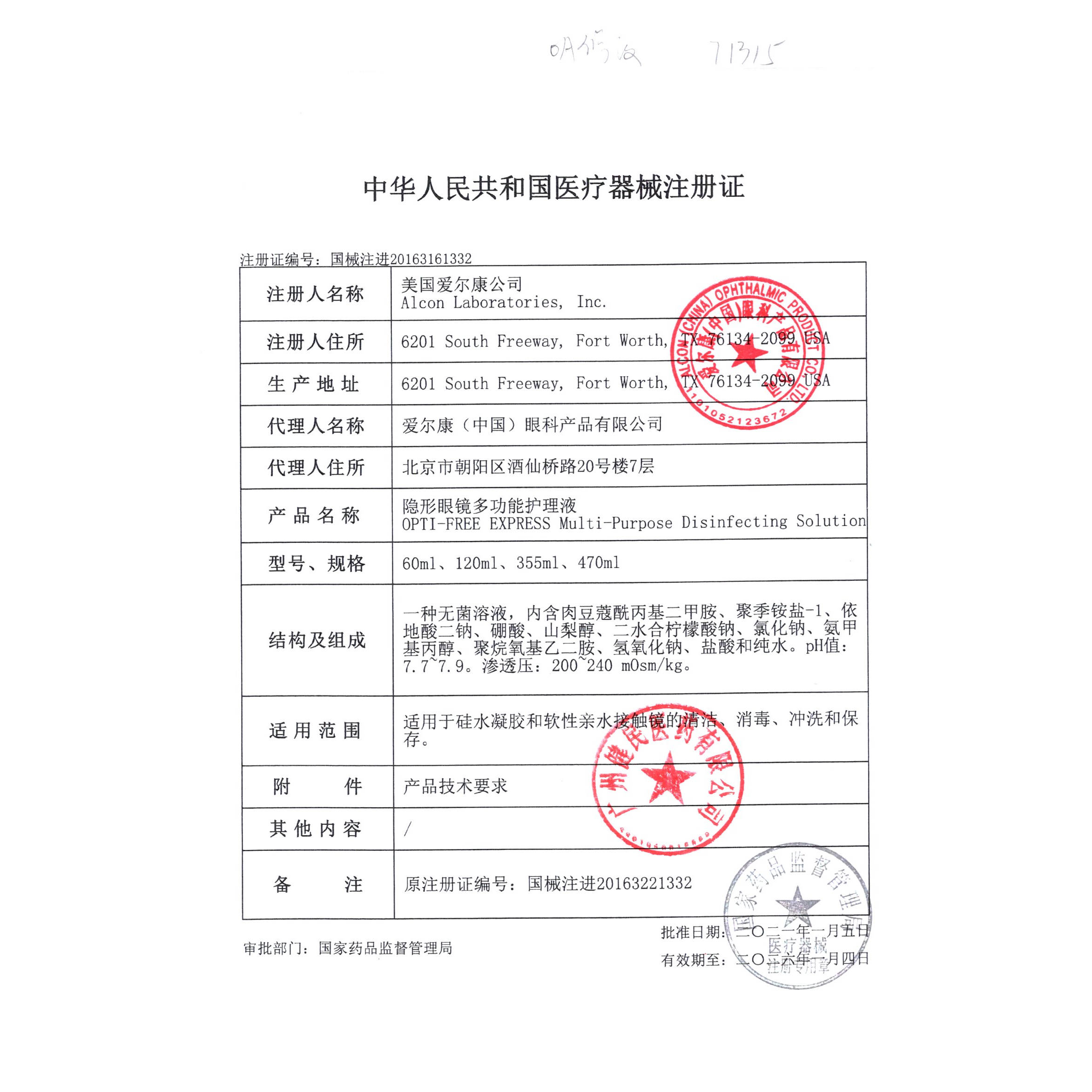 爱尔康傲滴隐形眼镜护理液美瞳白片眼镜护理液润眼洗眼液套装进口
