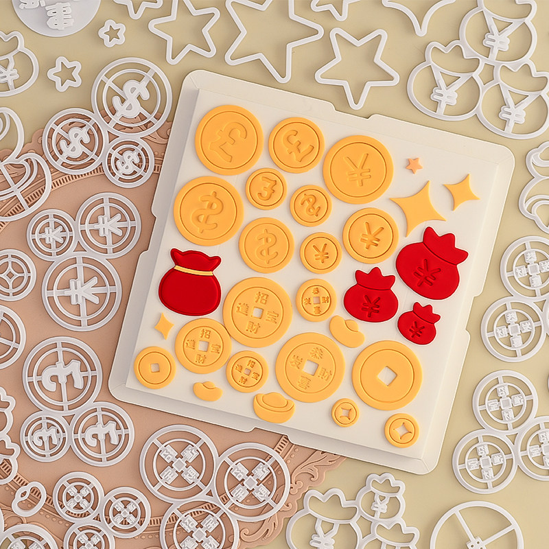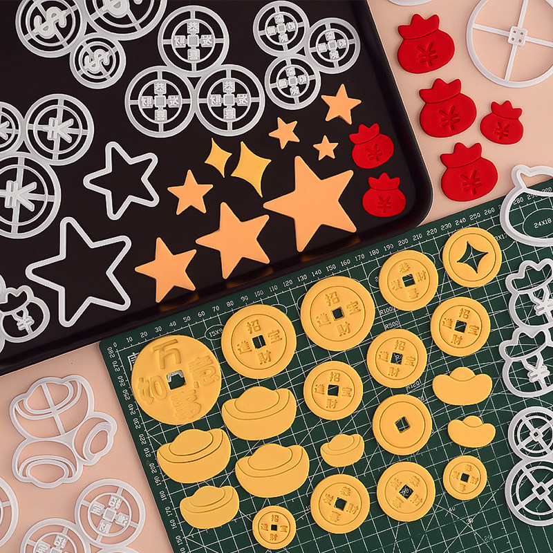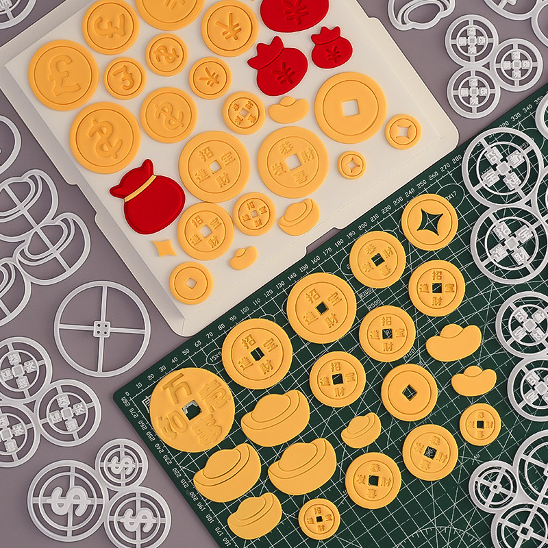 糖堡森林招财恭喜铜钱切模翻糖元宝福袋钱币符号蛋糕烘焙装饰模具