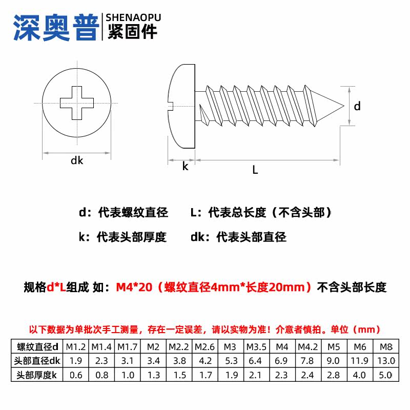 304不锈钢自攻螺丝十字圆头自攻丝木螺丝钉自攻螺钉大全M1-M4M6M8