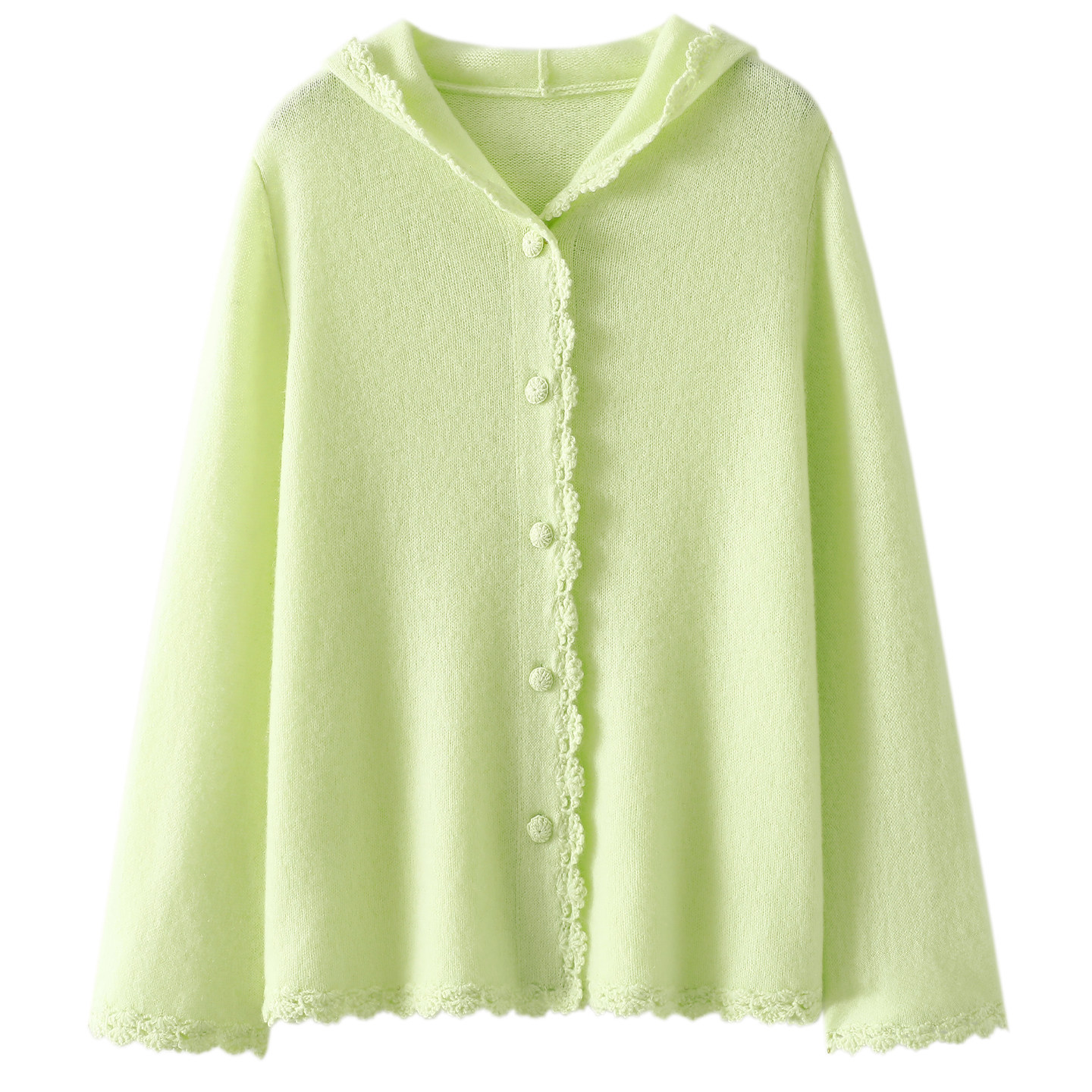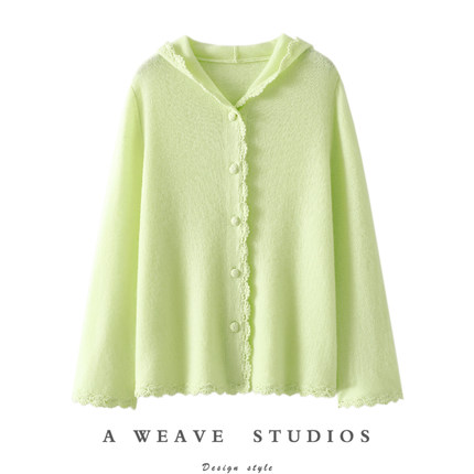 启超审美高度!手工钩花100%纯山羊绒开衫女连帽毛衣针织开衫外套