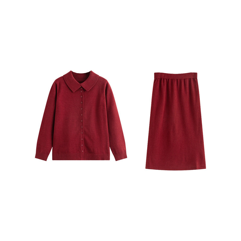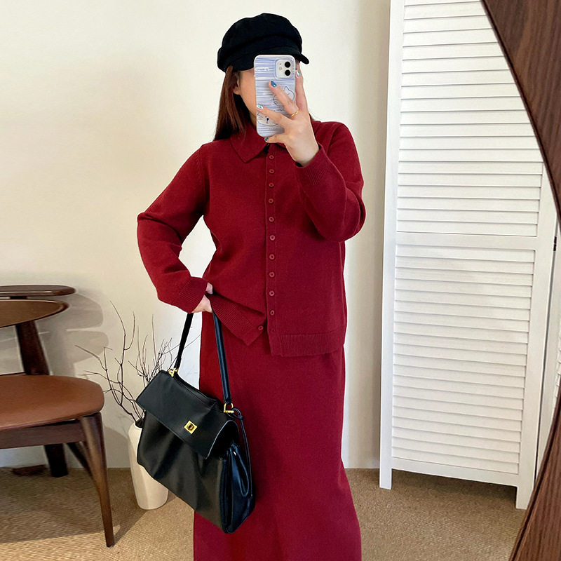 乃粒大码女装气质半高领开衫女半裙针织套装冬款胖mm两件套23151