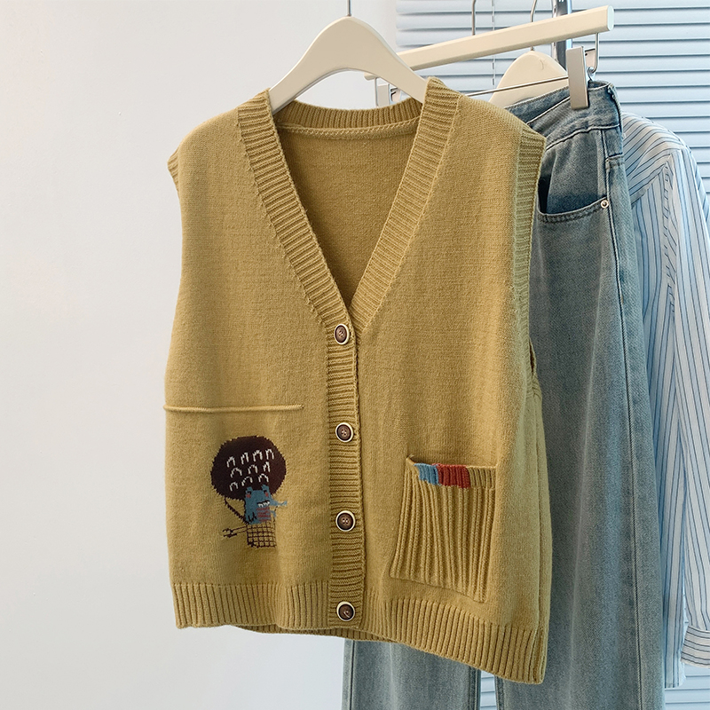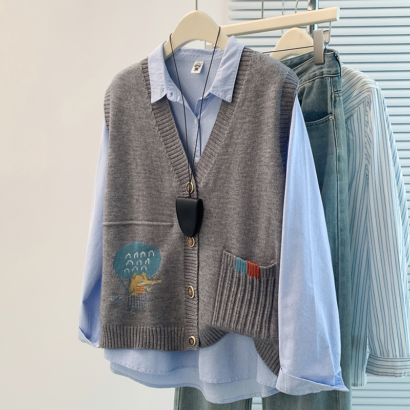 实拍秋针织马甲女开衫2025新款V领宽松小个子百搭叠穿毛衣坎肩