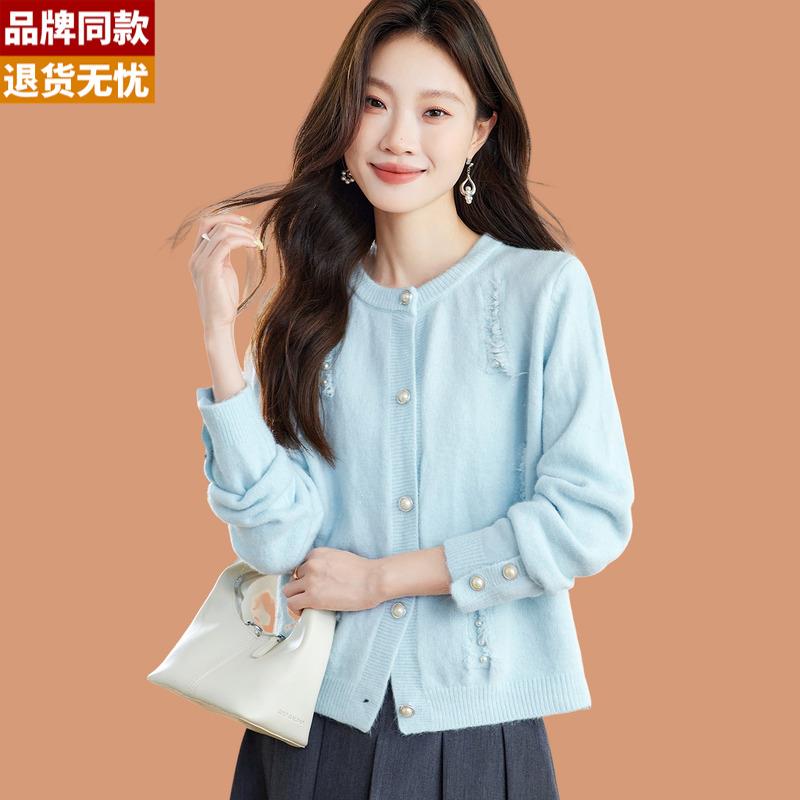 流苏钉珠毛衣外套女秋时尚小个子外搭披肩短款配裙子羊毛针织开衫