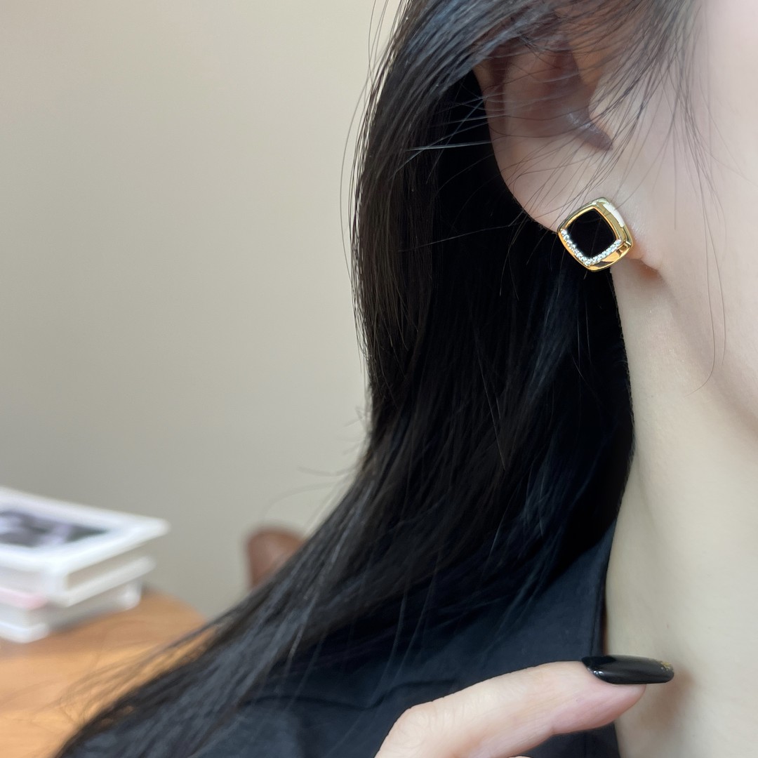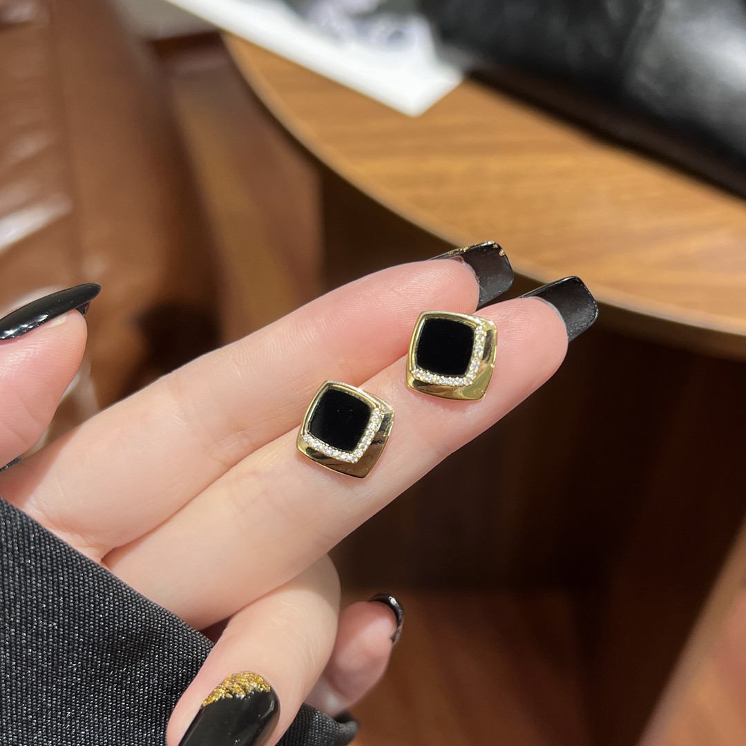 轻奢黑色方糖耳钉2025新款爆款高级感耳环女小众设计耳扣复古耳饰