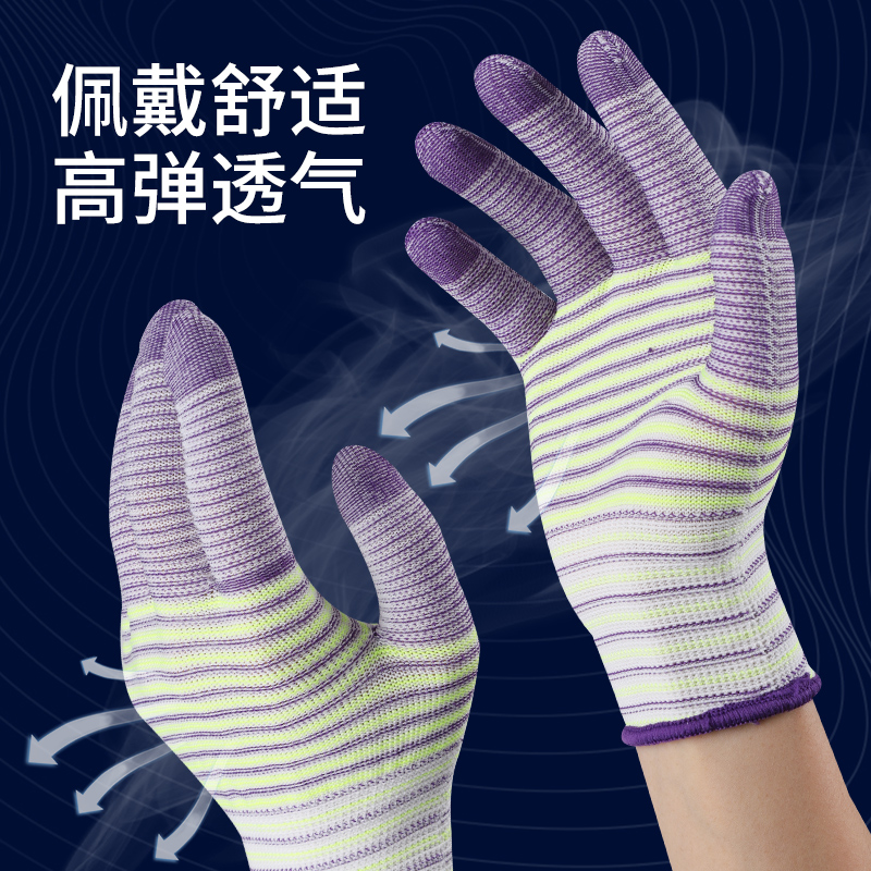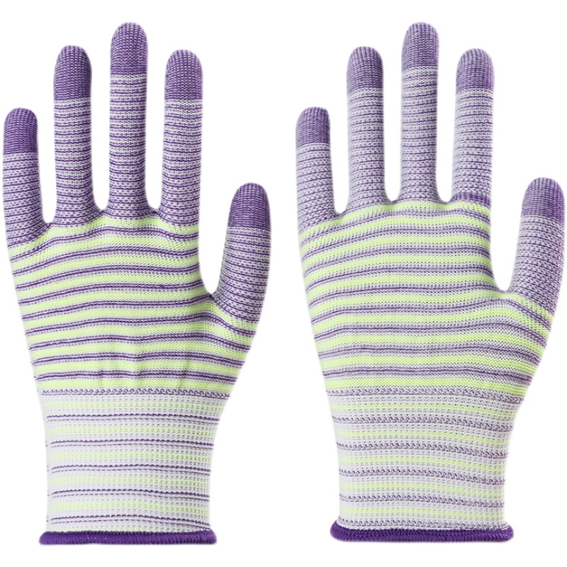 针织尼龙薄款劳保手套PU涂指涂掌