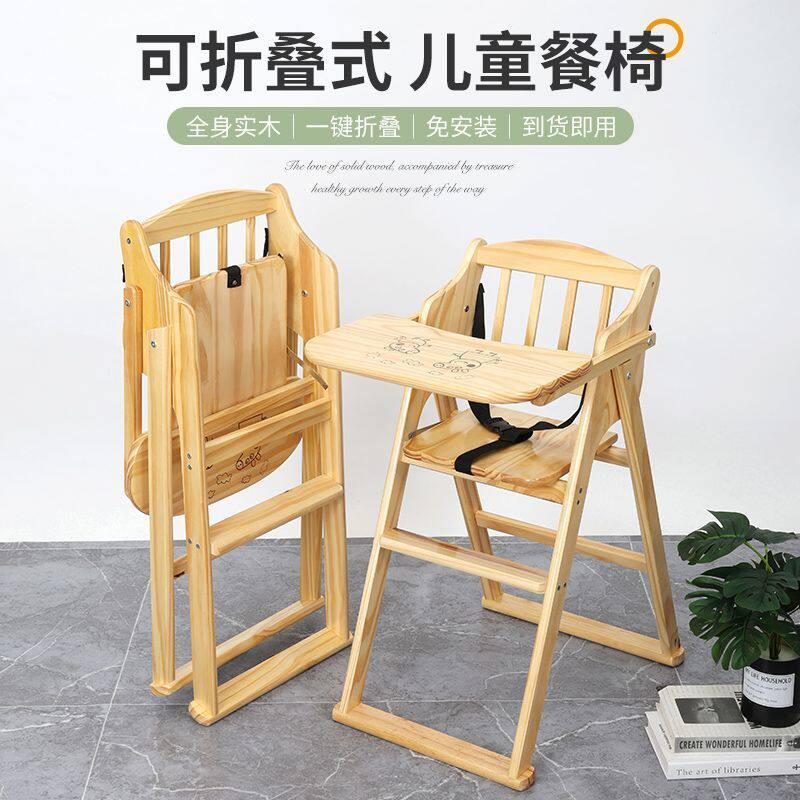 实木餐椅儿童吃饭座椅家用椅子餐厅折叠餐桌椅凳子防摔座椅多功能