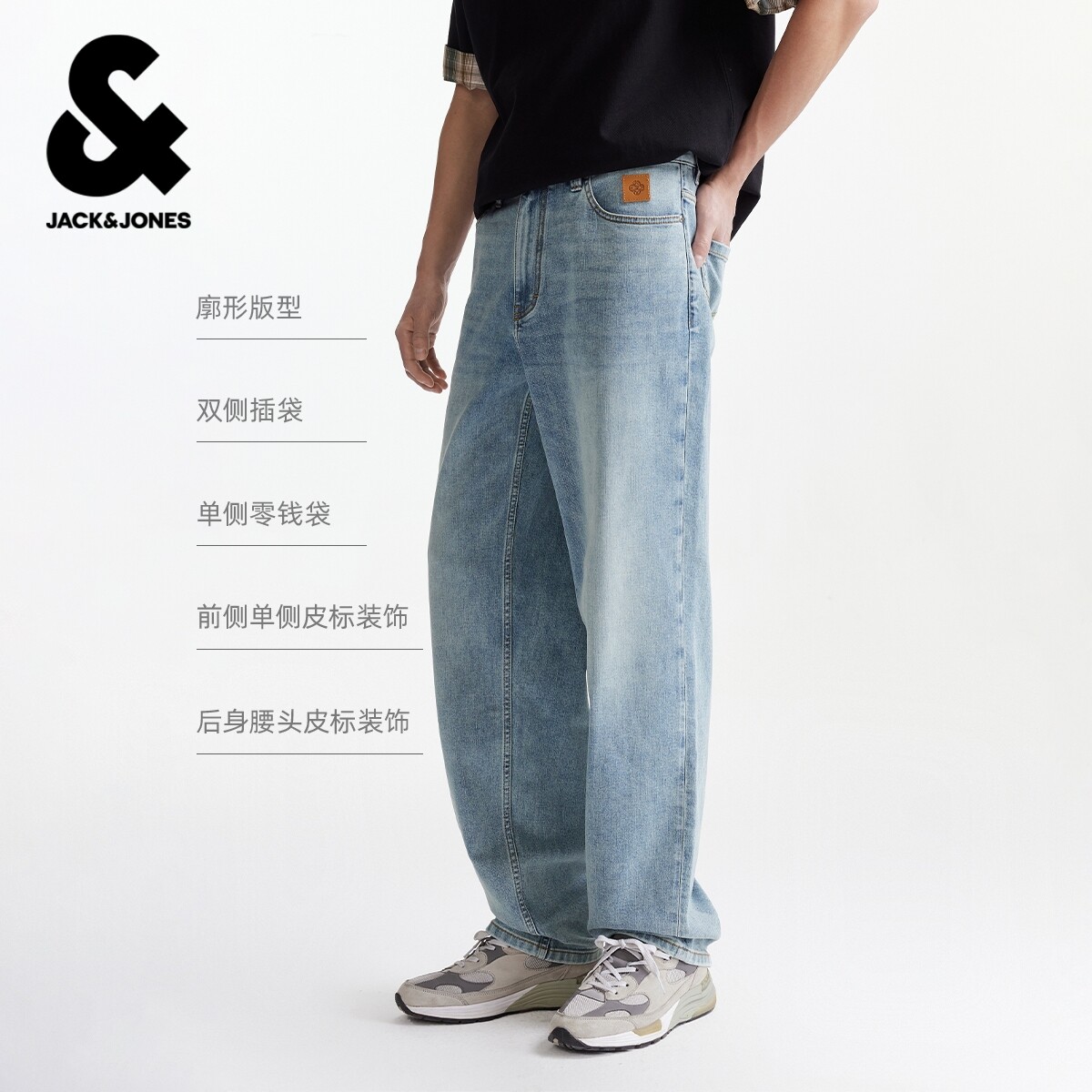 绫致杰克琼斯男装春季新款宽松长裤阔腿裤牛仔裤百搭简约舒适裤子