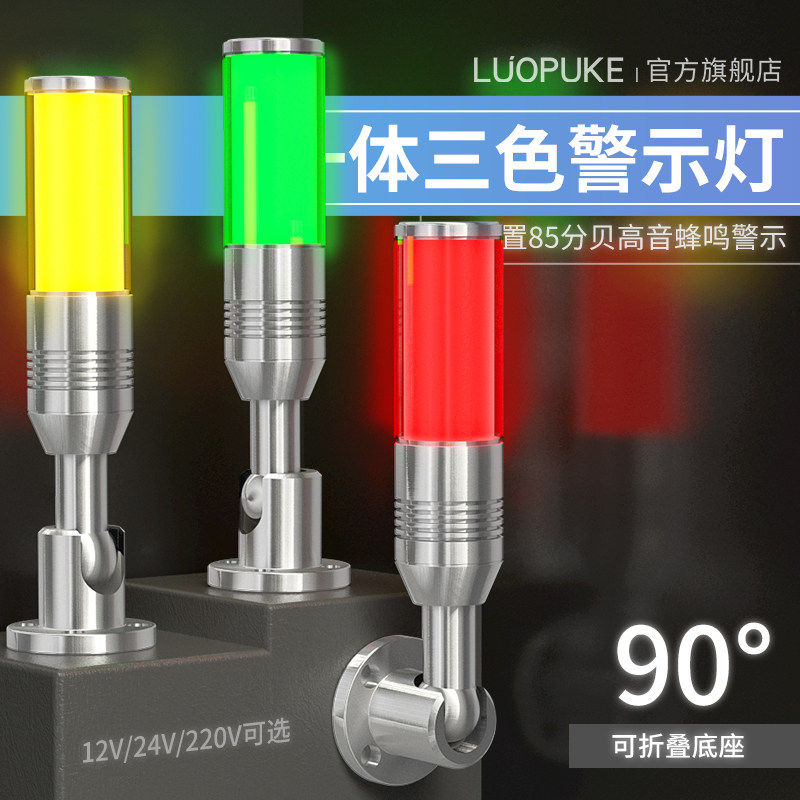 LED一体三色灯数控车床信号报警指示灯铝合金折叠声光报警器