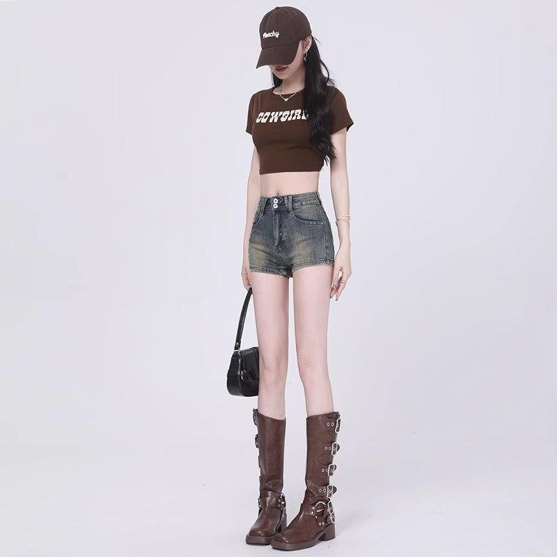 美式复古牛仔短裤女2025年夏季新款高腰紧身a字辣妹热裤