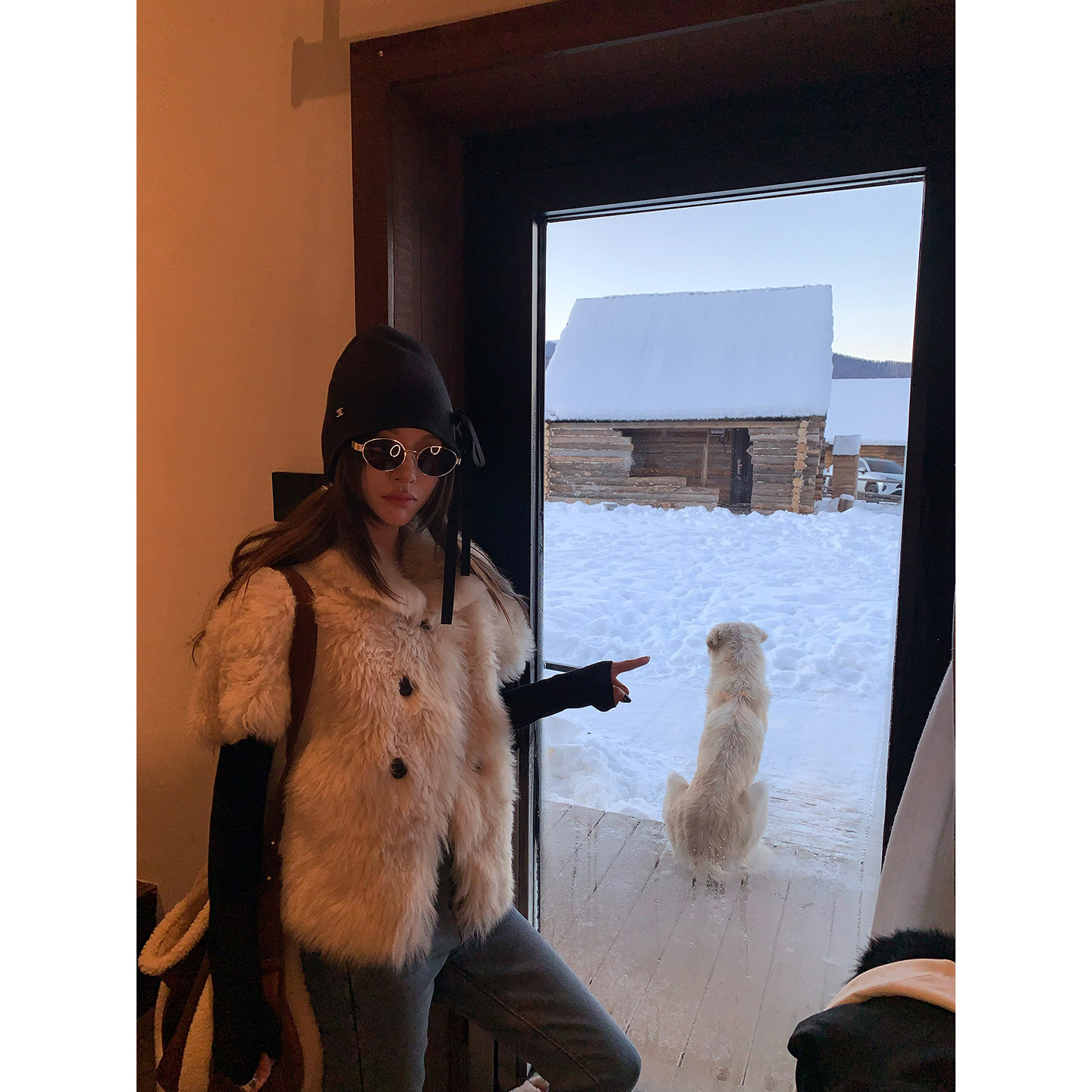牙套大汪【雪顶托卡】意大利托斯卡纳皮毛一体皮草外套女冬季短款